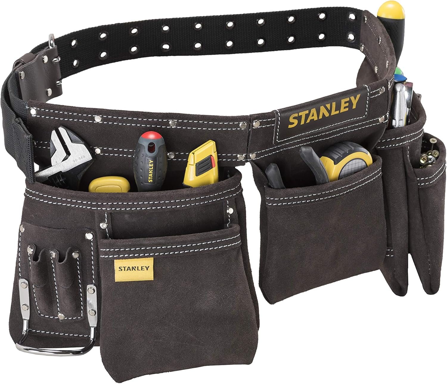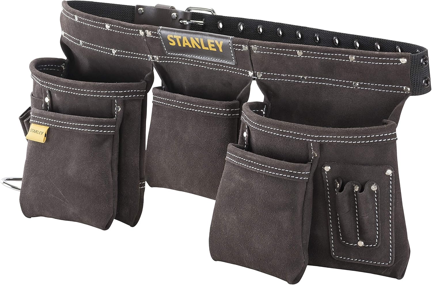 STANLEY Leather Tool Belt Pouch Apron, Multi-Pockets Storage Organiser, Hammer Loop, STST1-80113