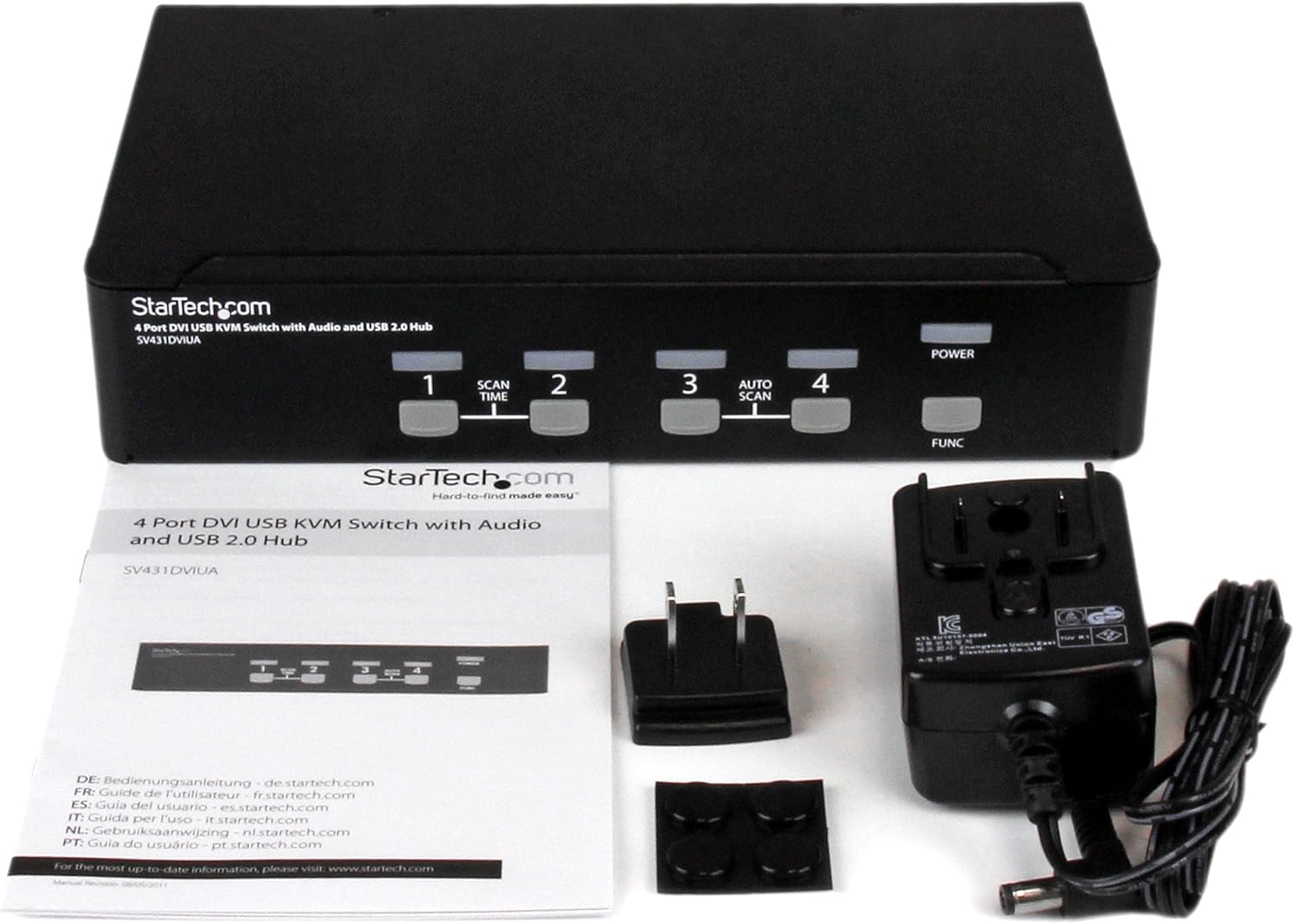 StarTech.com 4-Port KVM Switch for DVI Computers – 1U Rack-Mount KVM Switch with Audio – DVI KVM switch -2 port – 1U (SV431DVIUA)