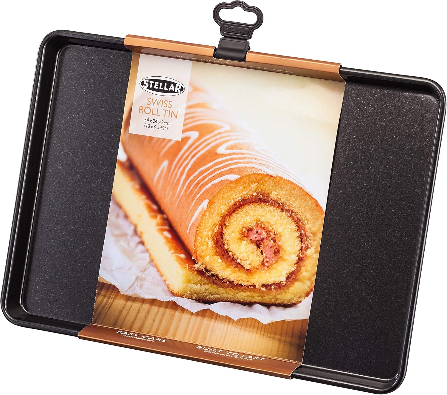 James Martin bakers dozen bake ware manufactured by Stellar James Martins new range of heavy duty bake ware. High grade steel with rigid rolled edges for strength and durability. Superior double layer non-stick on all surfaces. Easy to clean. Dishwasher safe. 5 year non-stick guarantee, Stellar lifetime steel guarantee. Sleeved with a James Martin recipe on rear.