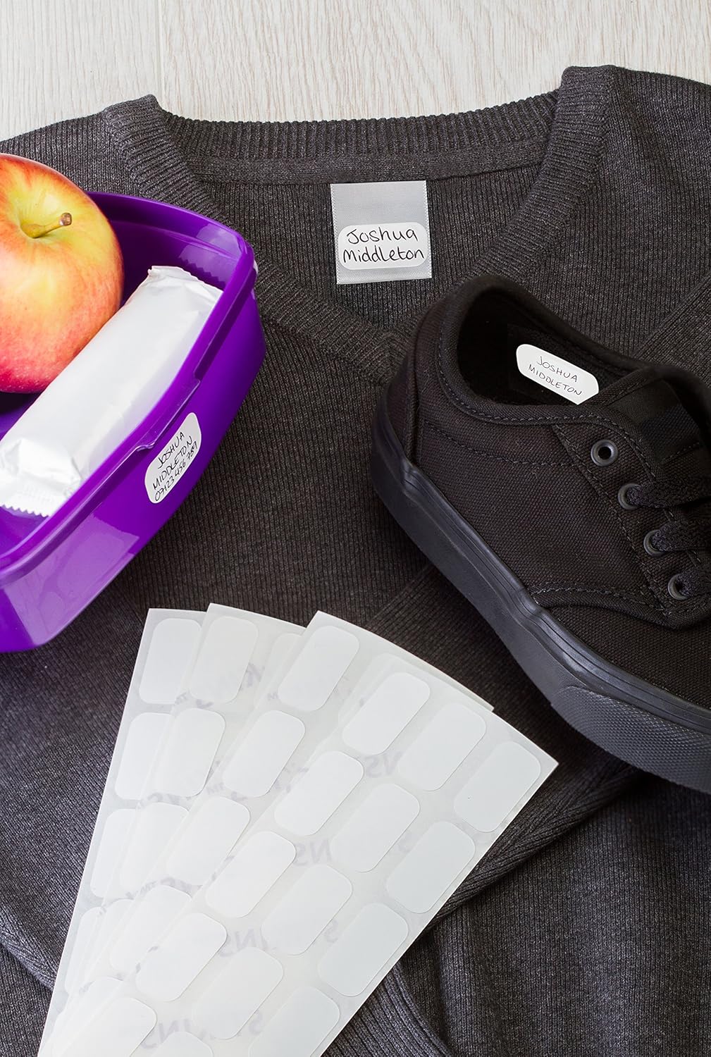 – Clothes: Stick the label onto the Care Tag/Wash-Care Label. Do not stick the labels straight onto the fabric. Do not stick to any other tags other than the Care Tag/Wash-Care Label.