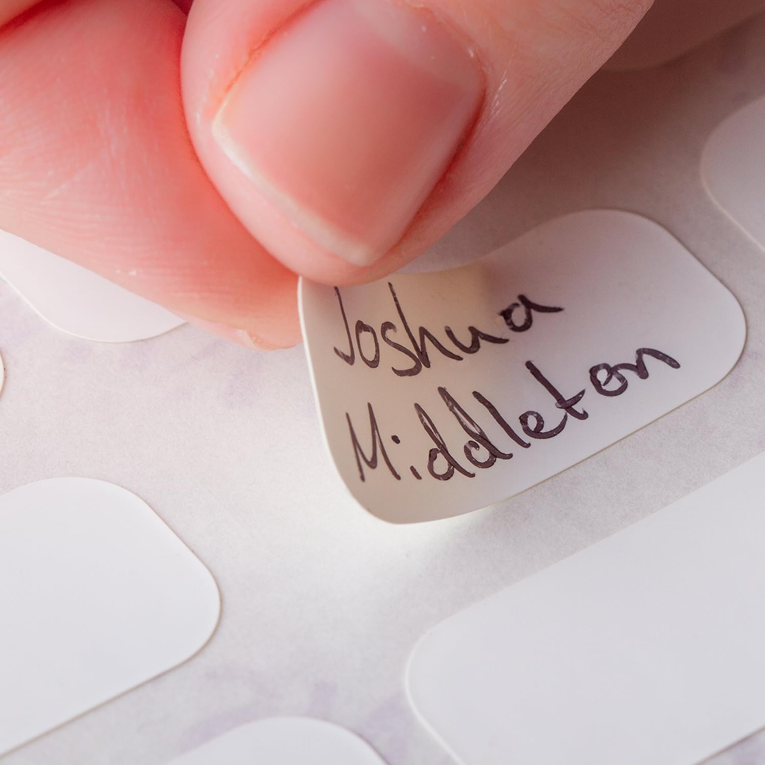 – Carefully peel the label from the backing paper, trying to avoid touching the adhesive.