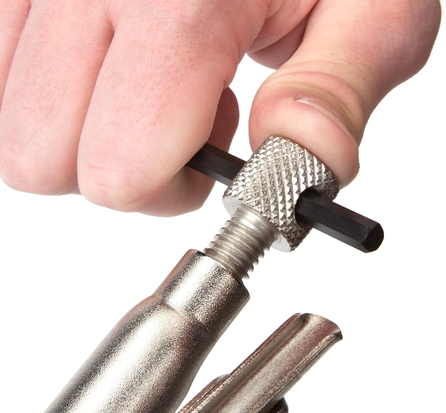 Tensioning Through-HoleCreate a T-handle by inserting a screwdriver or hex key into the hole in the adjustment knob. With this extra leverage, you can lock the pliers onto the workpiece and gradually add or release tension to fine tune the clamping force. |
