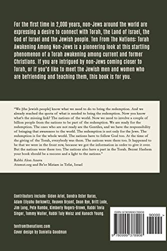 For the first time in 2,000 years, non-Jews around the world are expressing a desire to connect with Torah, the Land of Israel, the God of Israel and the Jewish people. Ten From The Nations: Torah Awakening Among Non-Jews is a pioneering look at this startling phenomenon of a Torah awakening among current and former Christians. If you are intrigued by non-Jews coming closer to Torah, or if you’d like to meet the Jewish men and women who are befriending and teaching them, this book is for you. NOTE TO READERS: The contributors to this book represent a wide range of theological positions. As a result, there are chapters in this volume that have the potential to make some Jews and some people from the Nations uncomfortable. If you’re willing to read about the spiritual stories of people with whom you don’t agree theologically, you’ll find that this book is groundbreaking.
