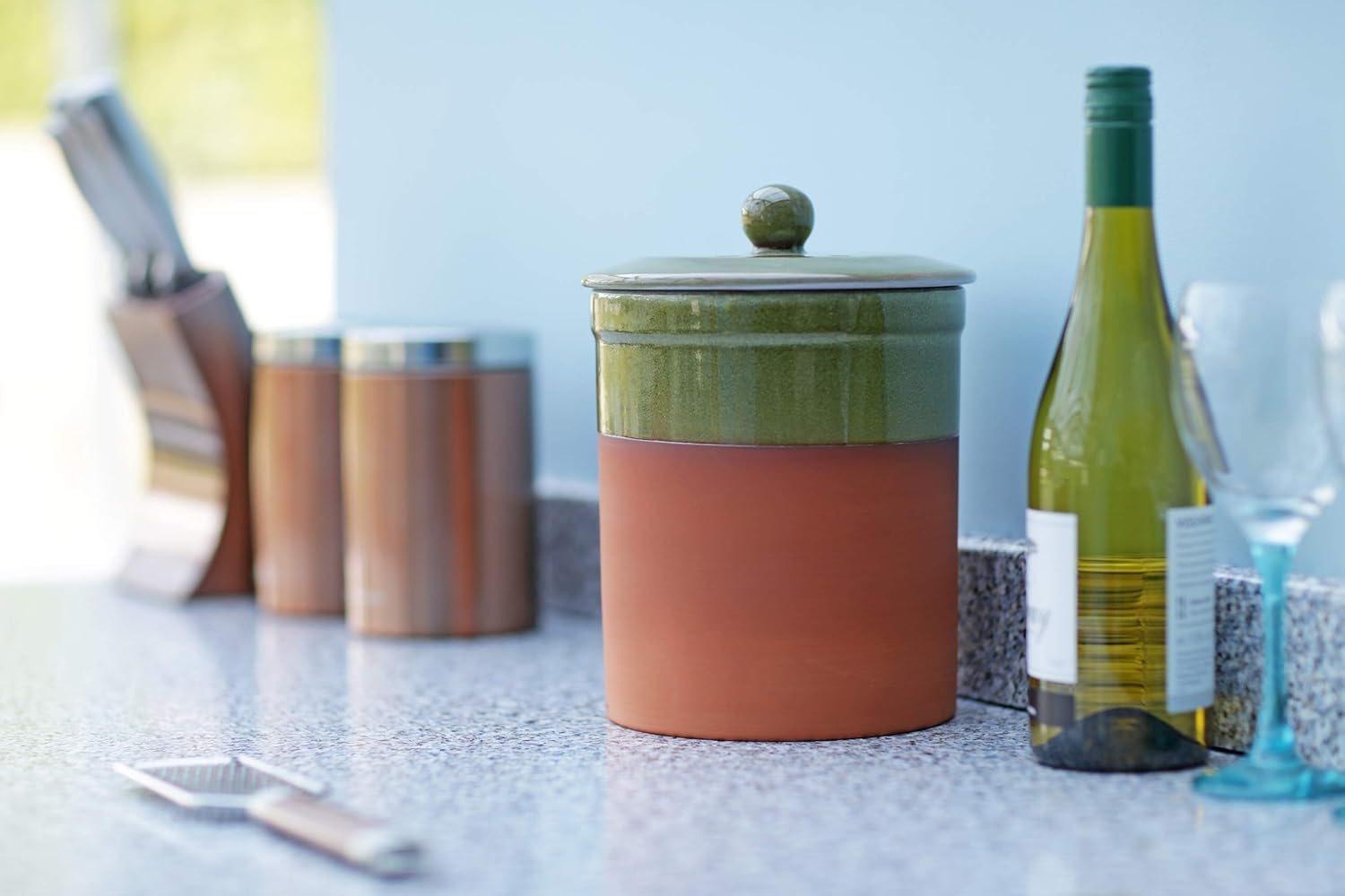 Terracotta Ceramic Kitchen Compost Caddy (Bramley green colour) – Chetnole ceramic composting Bin for Food Waste Recycling