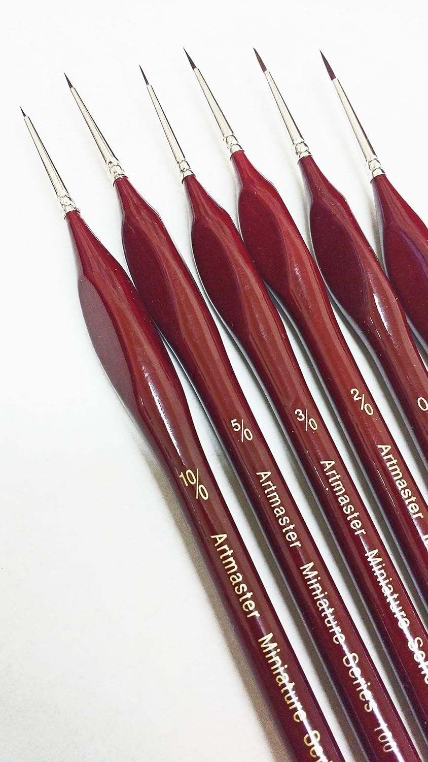 Fine detail brush 6 precision brushes for artists and model makers. Ideal for use with watercolour, acrylic and oil paints. Unlike most brushes these have easy grip triangular handles. Sizes: 10/0, 5/0, 3/0, 2/0, 0, 2