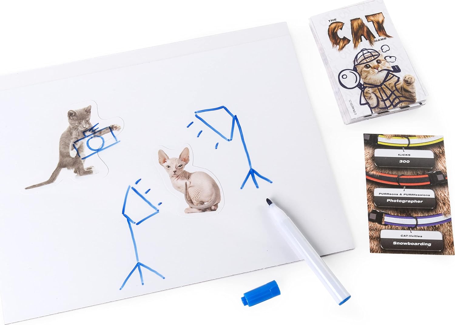 • Face off individually or break into teams and battle it out for meow-velous fun! This drawing game is great for small and large groups alike.