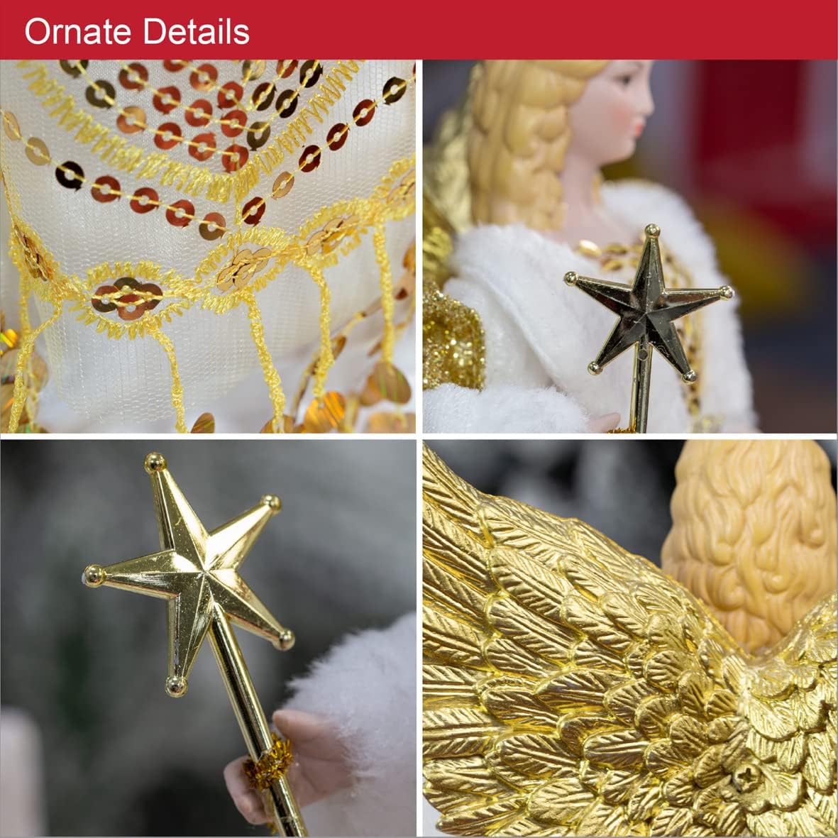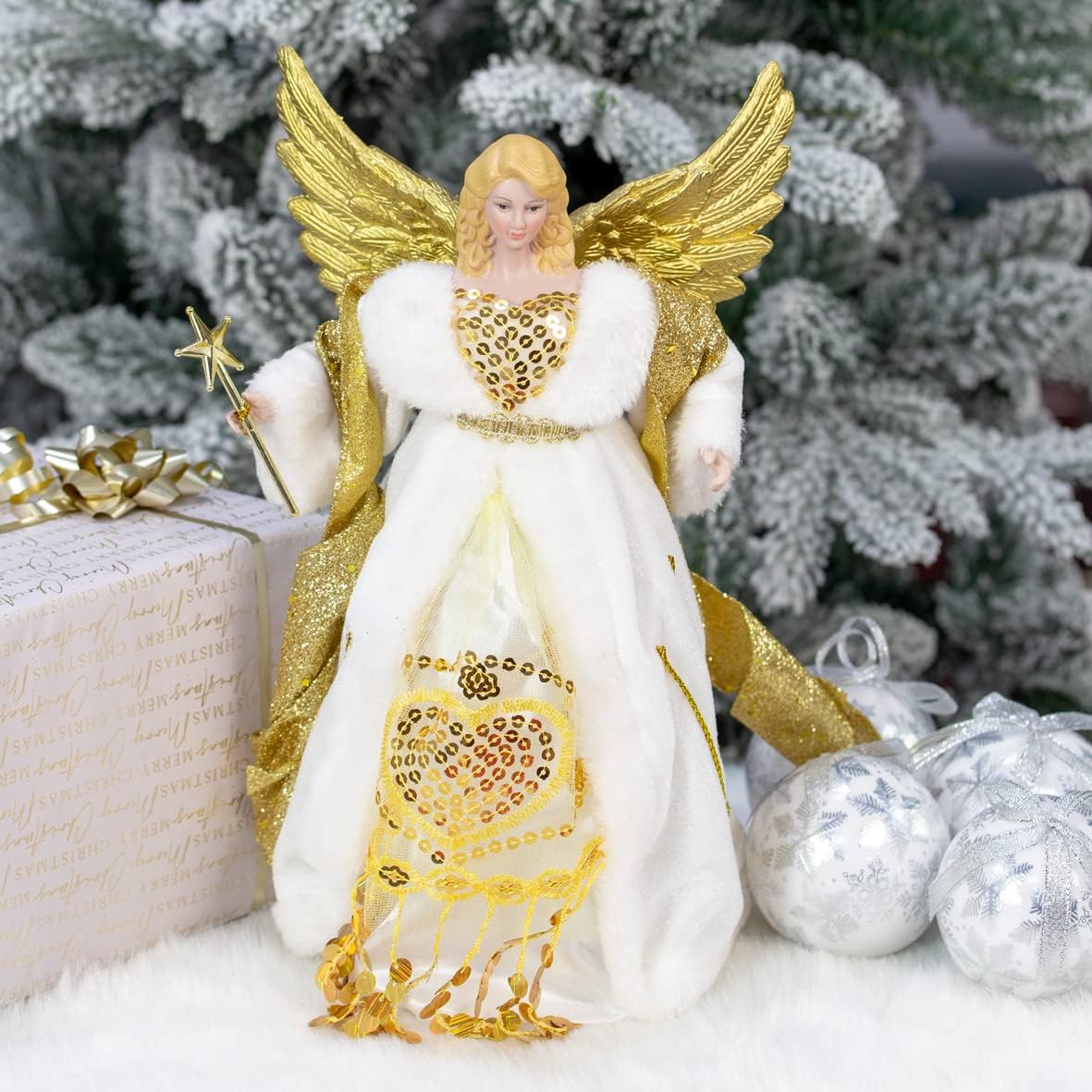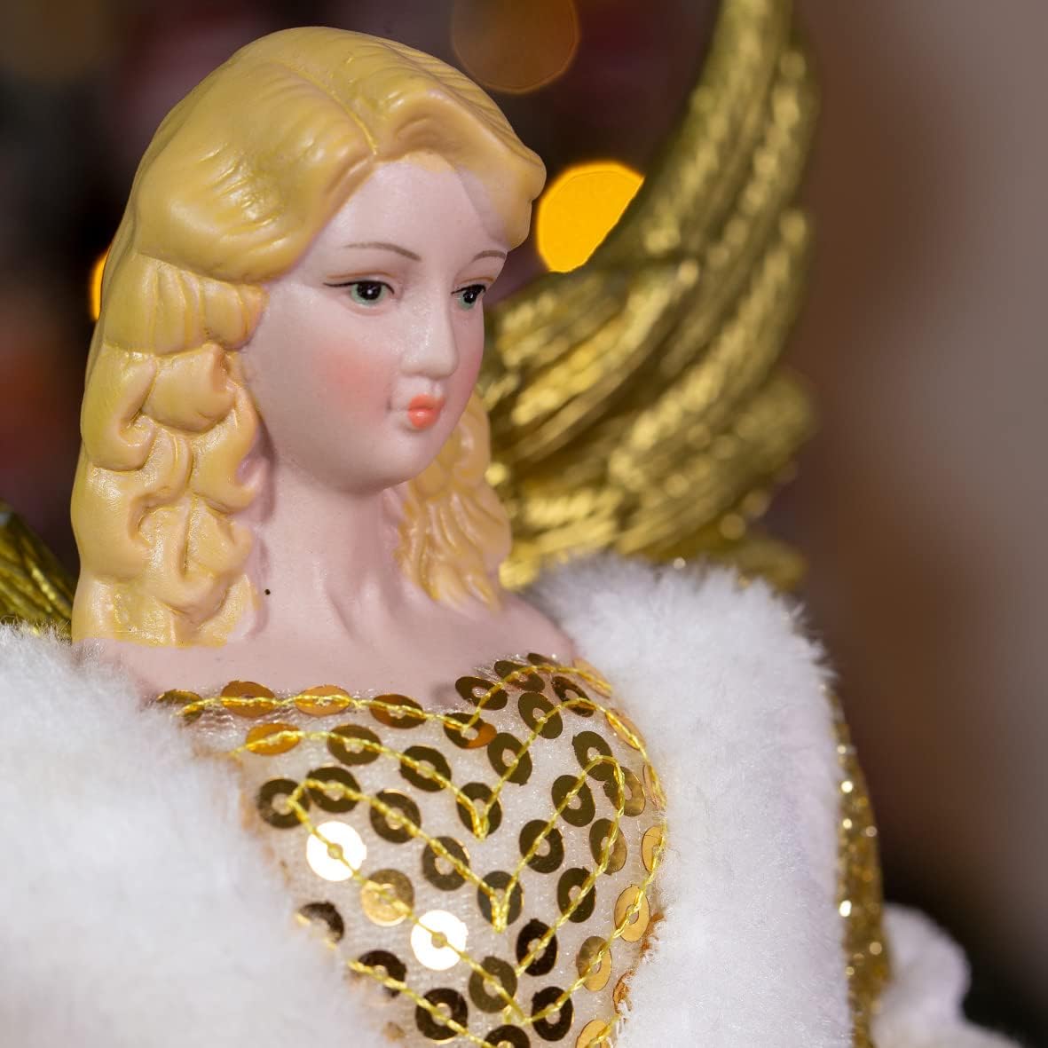 The Christmas Workshop is the market leading supplier of everything you need to make your Christmas as magical as ever! From indoor and outdoor lights and decorations, to Christmas ornaments such as nutcrackers and festive train sets, the Christmas Workshop has everything you need to decorate your home today. This beautifully crafted angel Christmas tree topper is the perfect Christmas ornament to become the centrepiece of your decorations this festive season. Measuring 12 inches in height (30cm), this angel will easily be seen at the top of your tree, and will provide that bold focal point you desire. The majestic angel is wearing a cream and gold dress, colours synonymous with the festive season and therefore colours that should easily blend in with the rest of your decorations. The angel has feathered wings, giving it a further sense of deity and adding to the sense of grandeur of the Christmas tree topper. Every Christmas tree needs an angel at the top, and this particular Christmas angel from The Christmas Workshop is the very best option to complete your festive decorations this year!