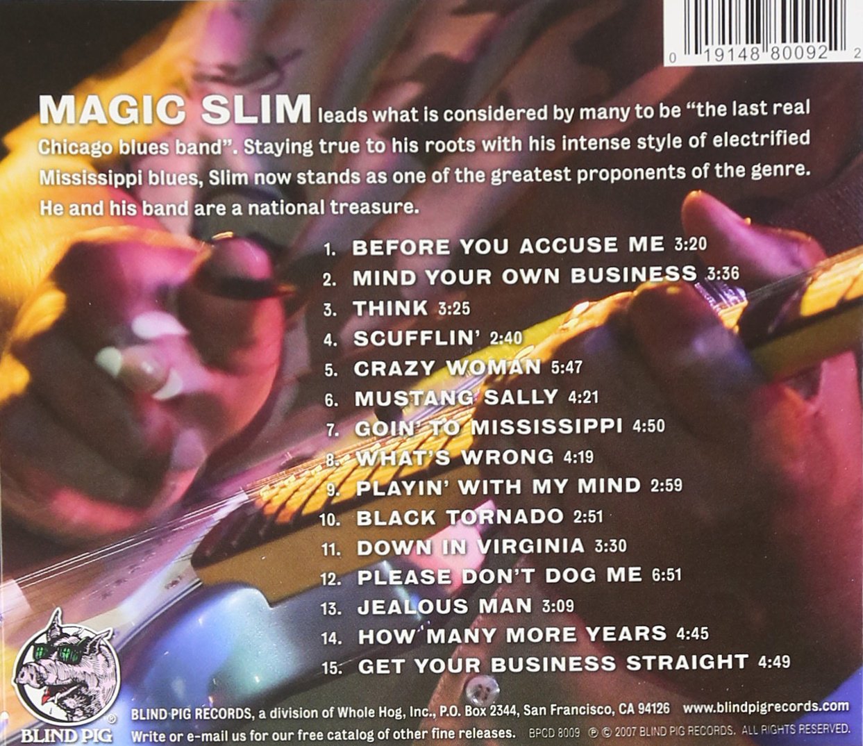 Magic Slim is the greatest living proponent of the intense, electrified, Mississippi-to-Chicago blues style that spawned much of the music played by modern blues artists and rockers. This budget priced, essential collection spans Slim’s eighteen year relationship with Blind Pig and includes his best know and most requested tunes.