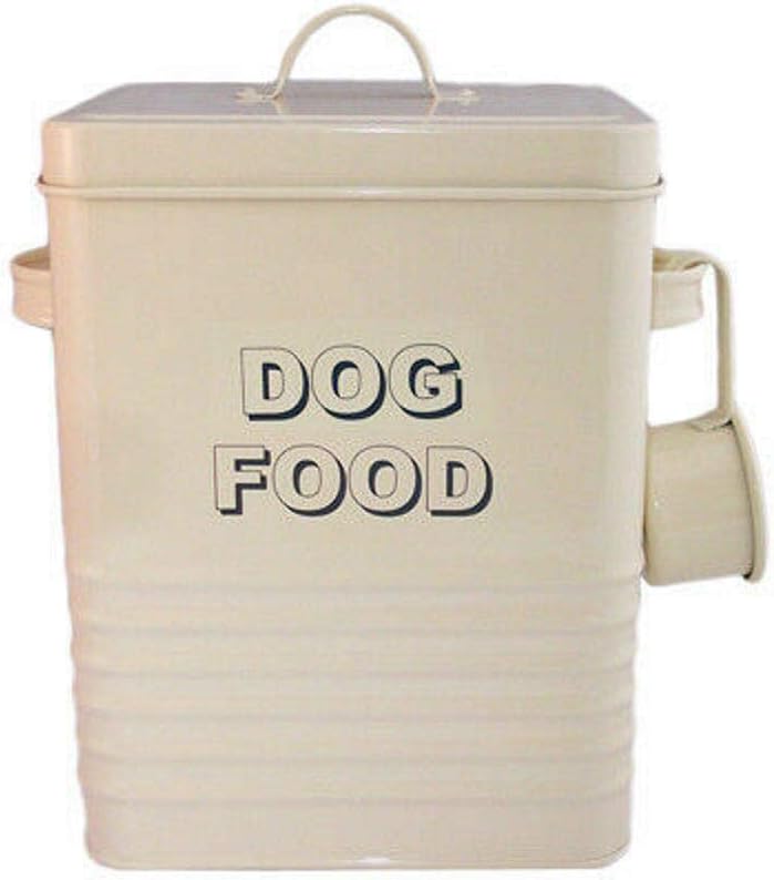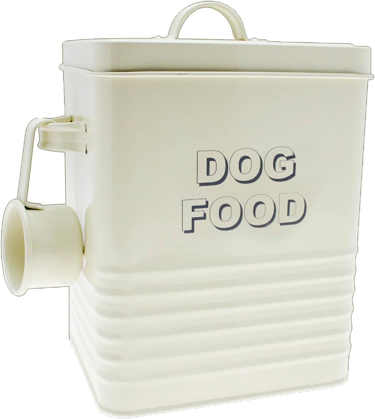 The Leonardo Collection Sweet Home Dog Food Storage Tin with Scoop, Cream