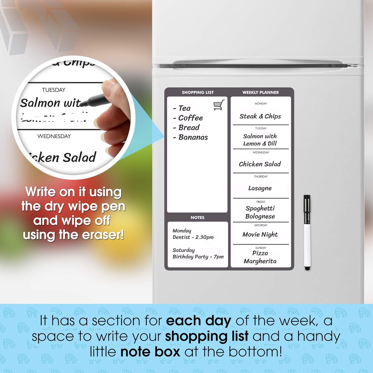 What You Get: Genuine Magnet Shop A4 meal planner in Grey, dry wipe pen with holder, 28 day no quibble returns policy and dedicated customer support should you ever need it.