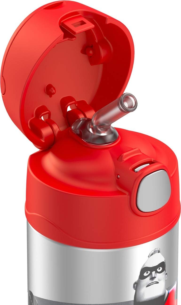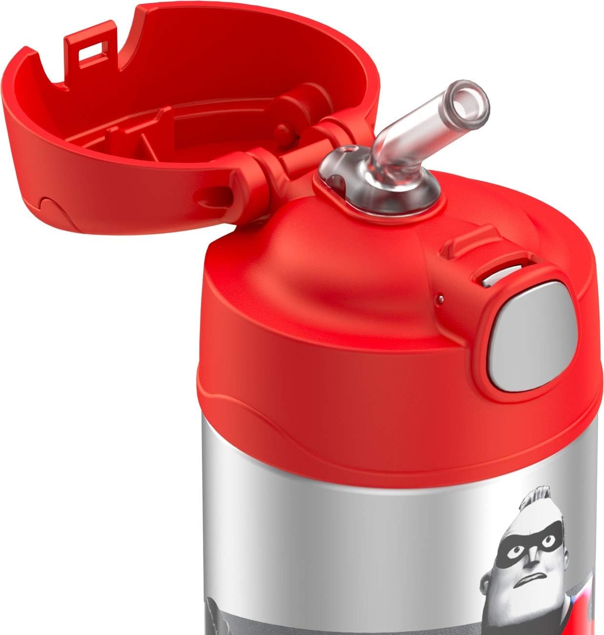 THERMOS FUNTAINER 12 Ounce Stainless Steel Vacuum Insulated Kids Straw Bottle, Incredibles 2