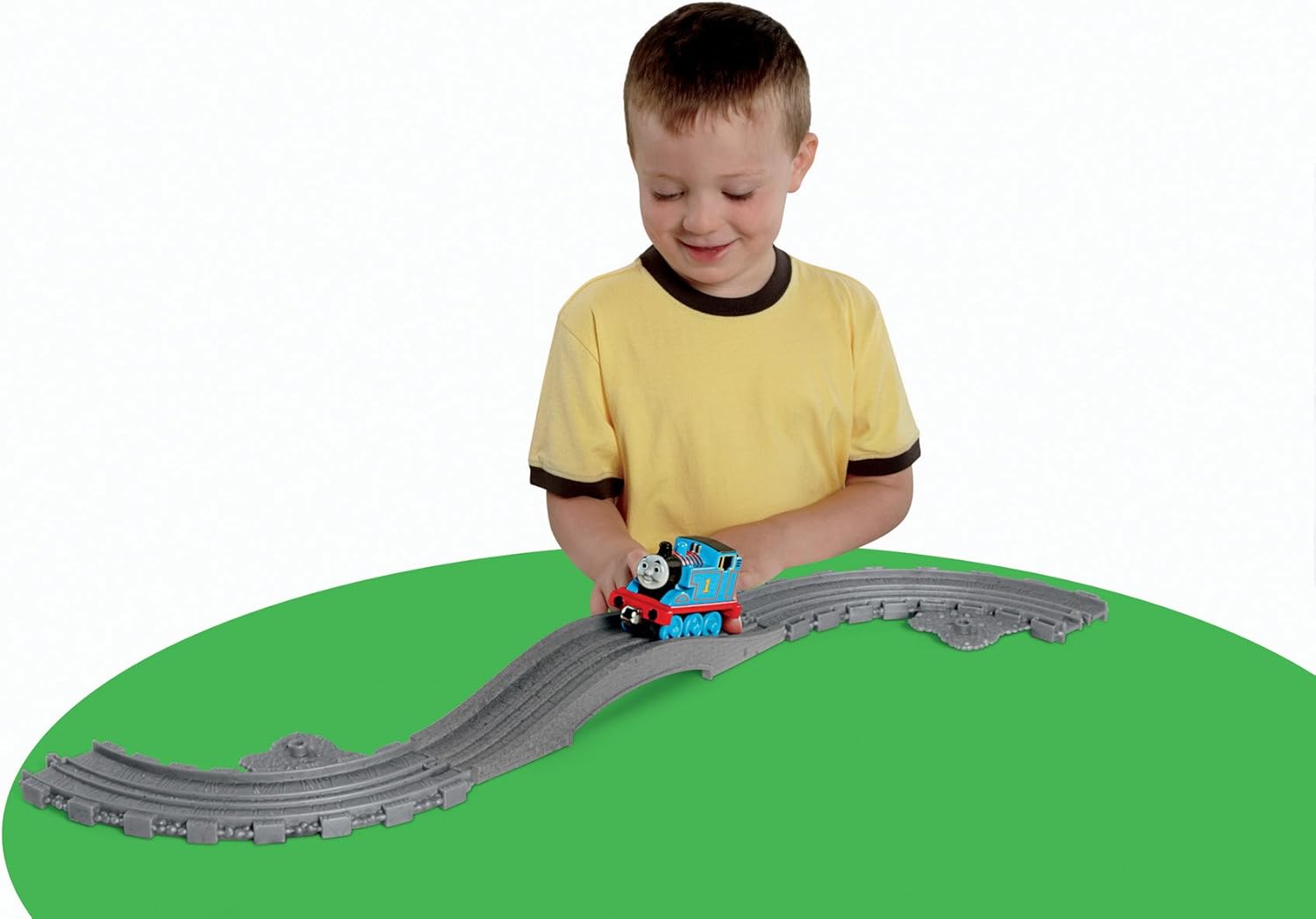 Expand any layout with portable fold-out track pieces that easily connect to any Take-n-Play playset. Track pieces include risers and signs. Can also be used to connect Take-n-Play playsets together. 3Y+