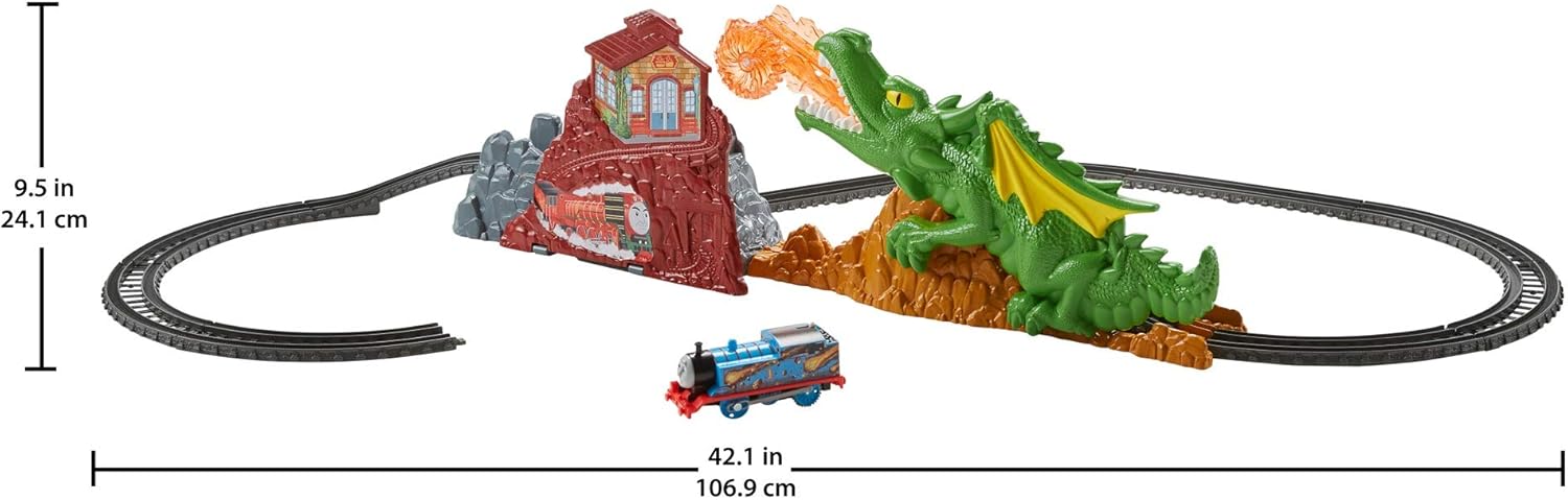 This Thomas & Friends motorized toy train set lets kids join Thomas on a fun, imaginative adventure as he races to escape a dragon!