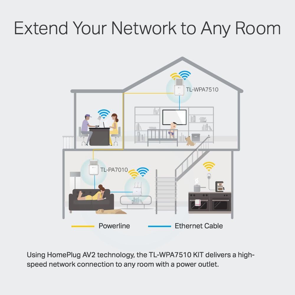 Extend Your Network AnywhereUsing HomePlug AV2 technology, the TL-WPA7510 KIT delivers a high-speed network connection to any room with a power outlet. |