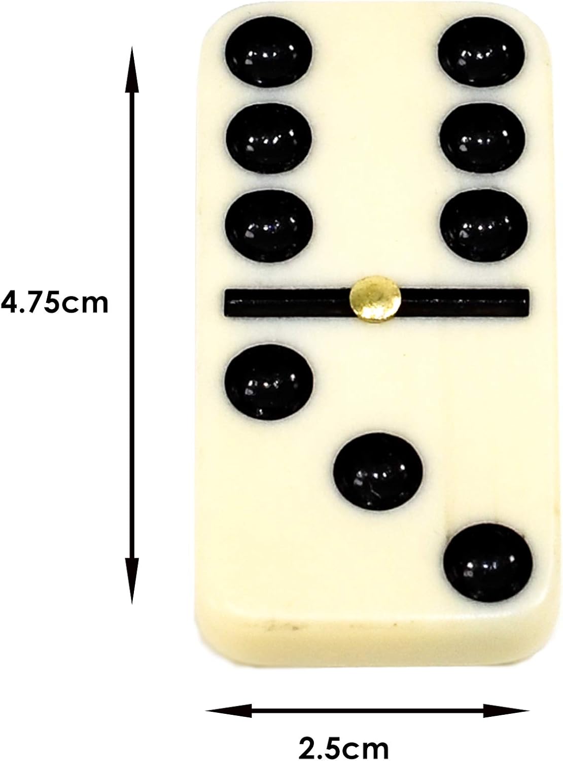 A classic game of dominoes;Twenty eight chrystaline pieces;Presented in a beautiful and convenient storage tin;Suitable for everyone over three years old;Size of each dominoe piece 4.75 x 2.5 cm; Size of the box 19 x 11.5 x 5 cm