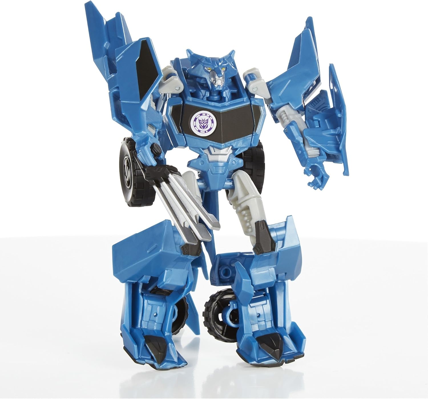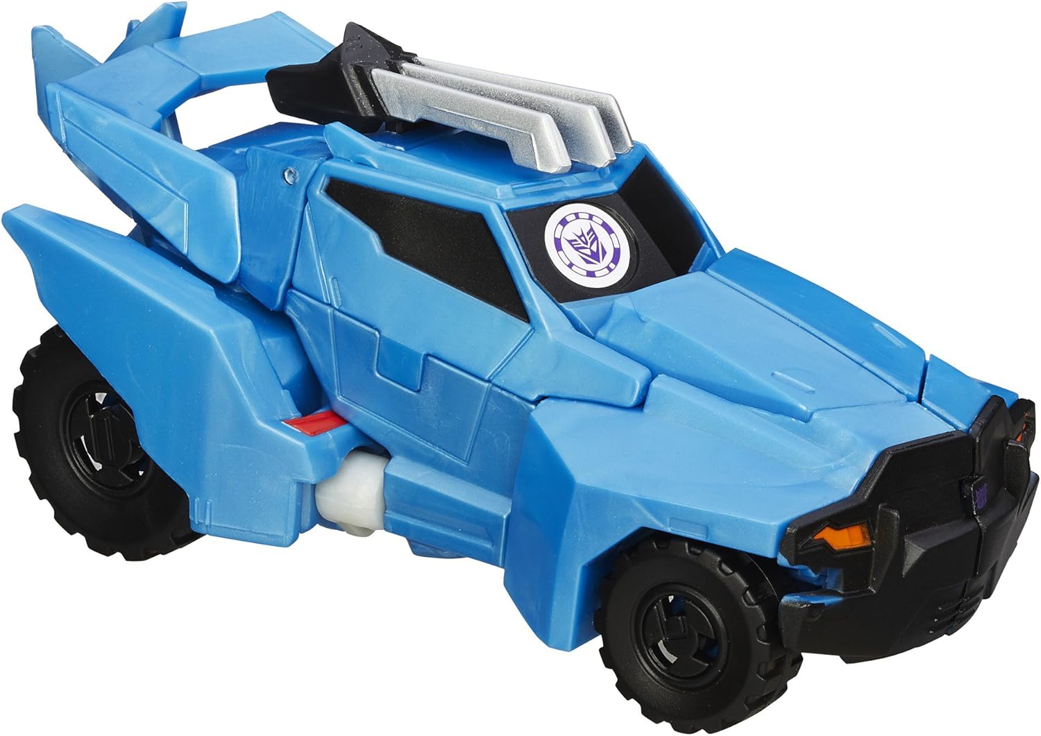 Autobots beware, because this Warrior Class Steel jaw figure converts in a heartbeat from robot mode to combat truck mode and he’s got a slashing claw to slash his foes to scrap! Convert him in 9 steps to either mode and keep converting him back and forth so his Autobot enemies can’t keep up! Transformers and all related characters are trademarks of Hasbro.