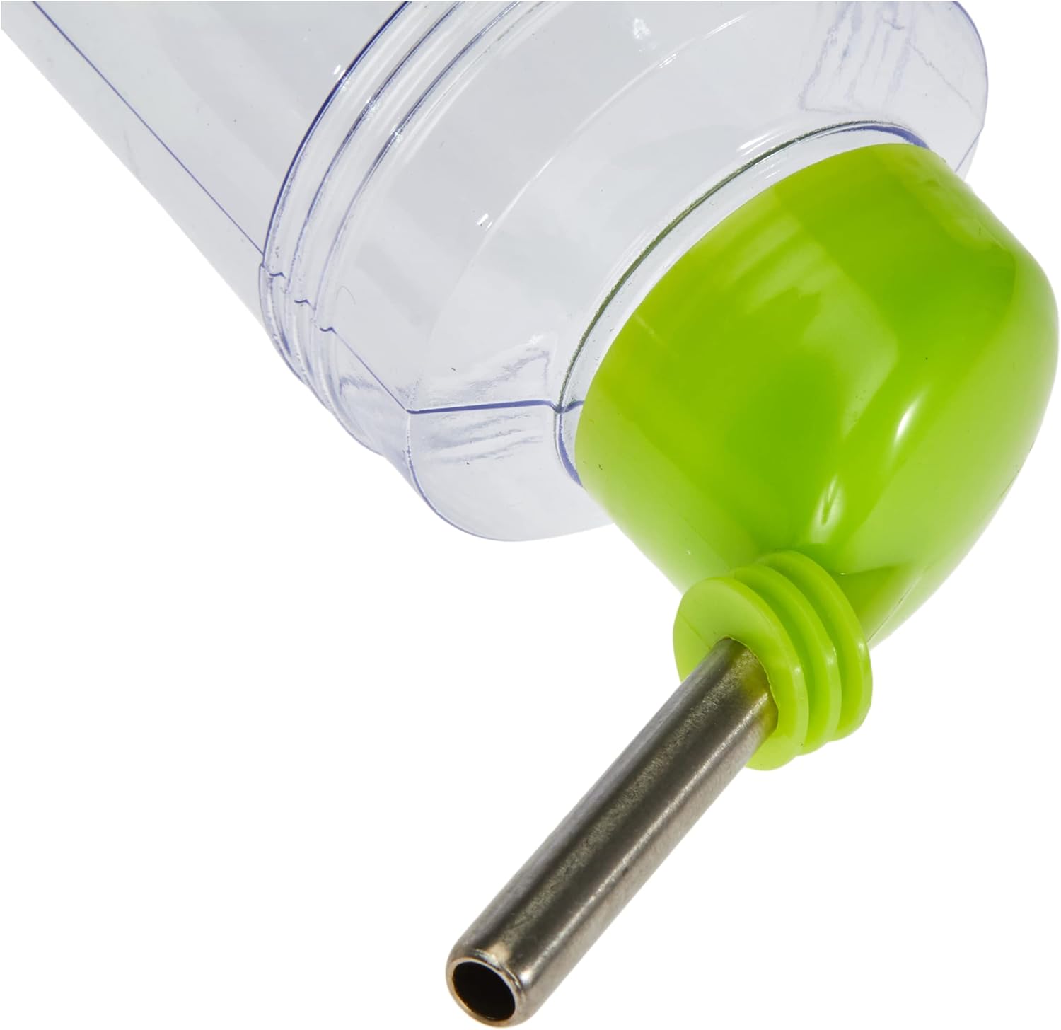 Trixie water bottle with screw attachment made of plastic material. It is transparent bottle allows easy checking of water level with ball valve. It also has a secure attachment making it easy to fit to your cage or hutch. For small pets drinking water avoid water overflowing when drinking. It is very convenient to carry out for travel. Capacity: 500 ml, Assorted colors.