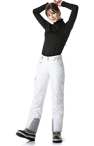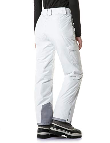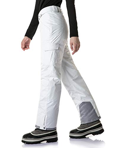 TSLA Women’s Winter Snow Pants, Waterproof Insulated Ski Pants, Ripstop Snowboard Bottoms, Snow Core Cargo Pants White, Large