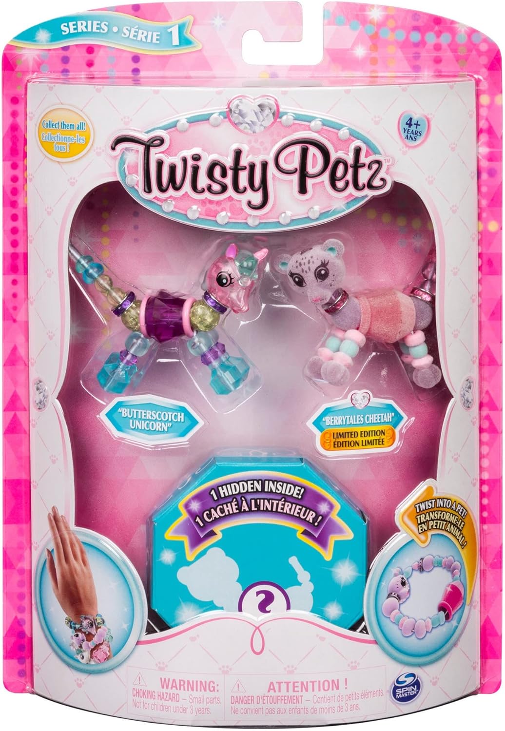 Wear on wrist, transform with a twist Twisty Petz are dazzling bracelets that turn into adorable petz From ponies to kitties to magical unicorns, there so many different bejewelled friends to collect Add pastel, rainbow, pearlescent, fuzzy or silver Twisty Petz to set to create bracelets and sparkling necklaces To turn into a pet, simply twist the front and back legs. To transform into a bracelet, pull apart and connect the two ends. For a necklace, simply connect three together This gempacked set contains three adorable Twisty Petz – one’s even hidden as a With over 70 to collect, may unbox a special edition, limited edition or super rare friend Discover the charm of Twisty Petz.