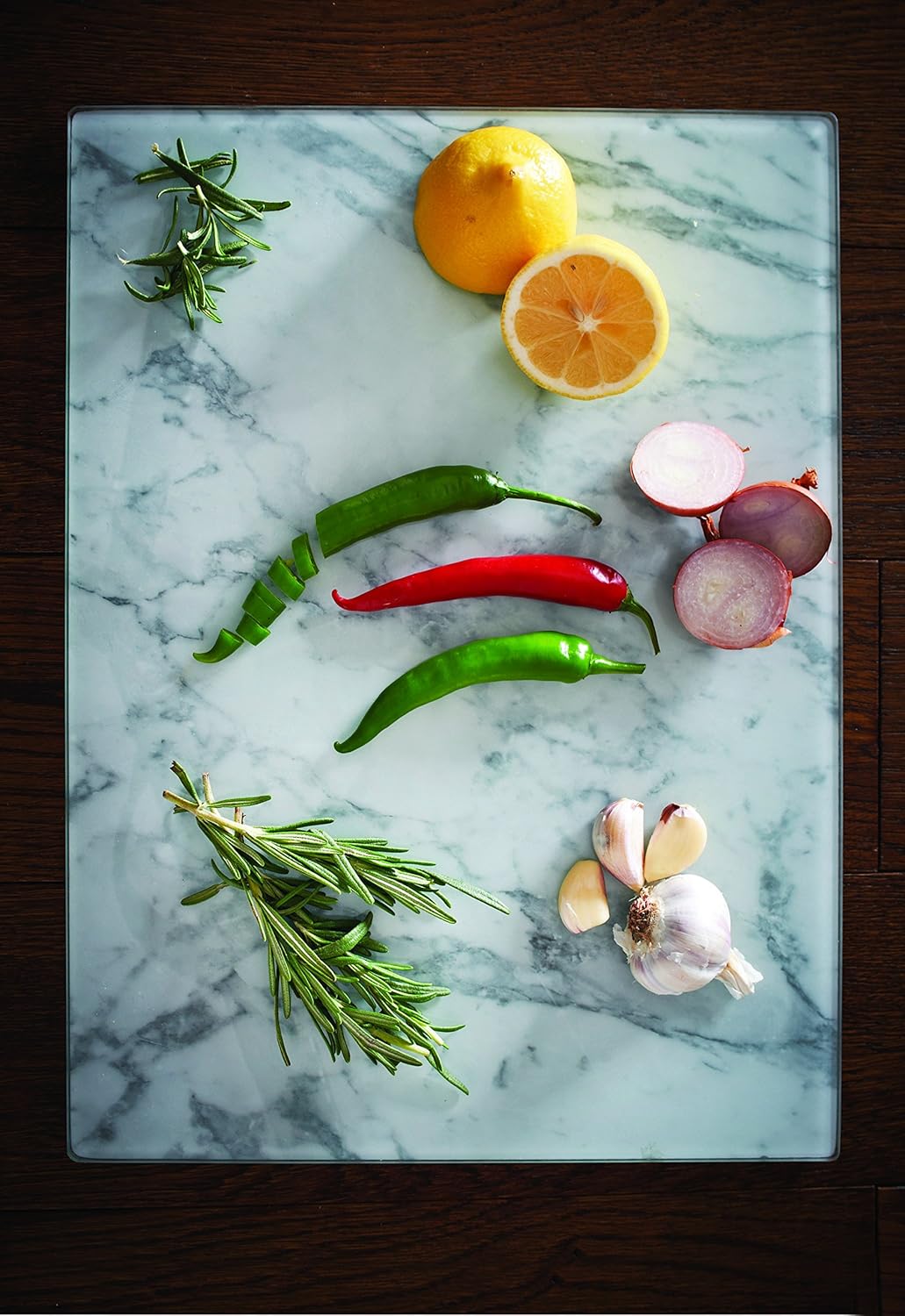 The Typhoon Marble wsp is ideal for cutting and chopping. It also protects surfaces from hot pans and is great for serving hot and cold food. Made from scratch resistant tempered glass. Non-slip silicone feet. Heat resistant to 180 degrees.