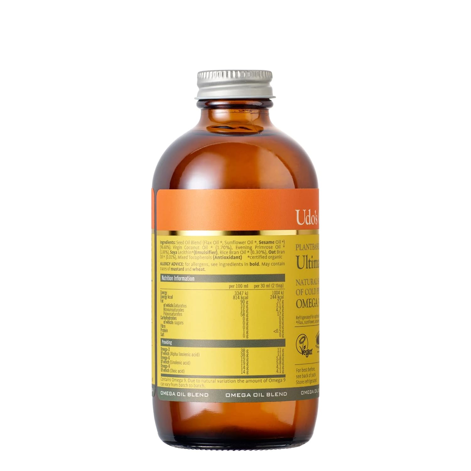Udos Choice Ultimate Oil Blend is a certified organice blend of unrefined seed oils. This unique blend delvers a reliable source of the unprocessed, readily utilised Omega 3 and 6 essential fatty acids that are vital for life. As part of a healthy diet, low in saturated fat and cholesterol, these can help maintain a healthy heart and healthy joints
