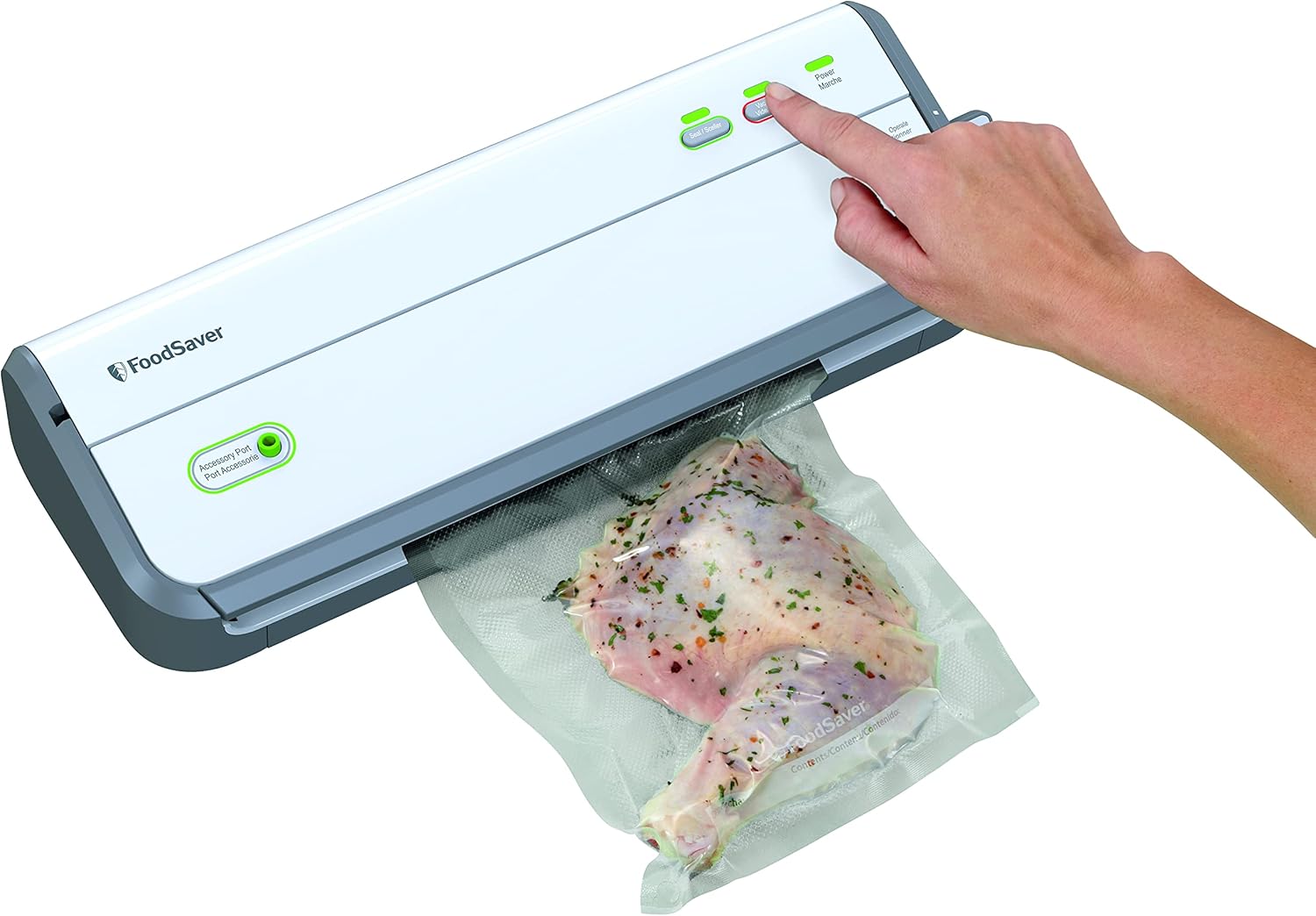 Always wanted a FoodSaver? Here’s everything you need in one starter kit. Keep food fresh up to 5x longer with the FoodSaver FM2010 Vacuum Sealing System. This countertop FoodSaver comes with everything you need to begin vacuum sealing food for storage, freezing or refrigeration. Start right away; this vacuum sealer starter kit includes a countertop vacuum sealer, Handheld Fresh Sealer, vacuum sealer bags, rolls and zipper bags.