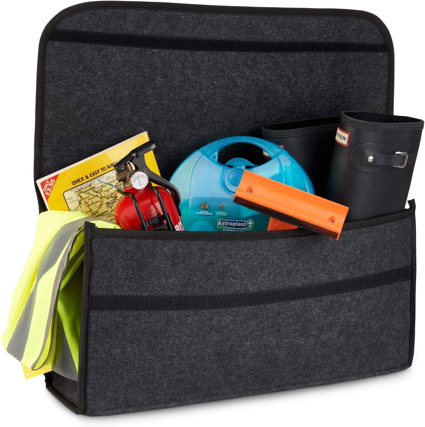 Made from high quality, tough carpet material, This Product is ideal for storing tools and small items in your vehicles’ Boot.