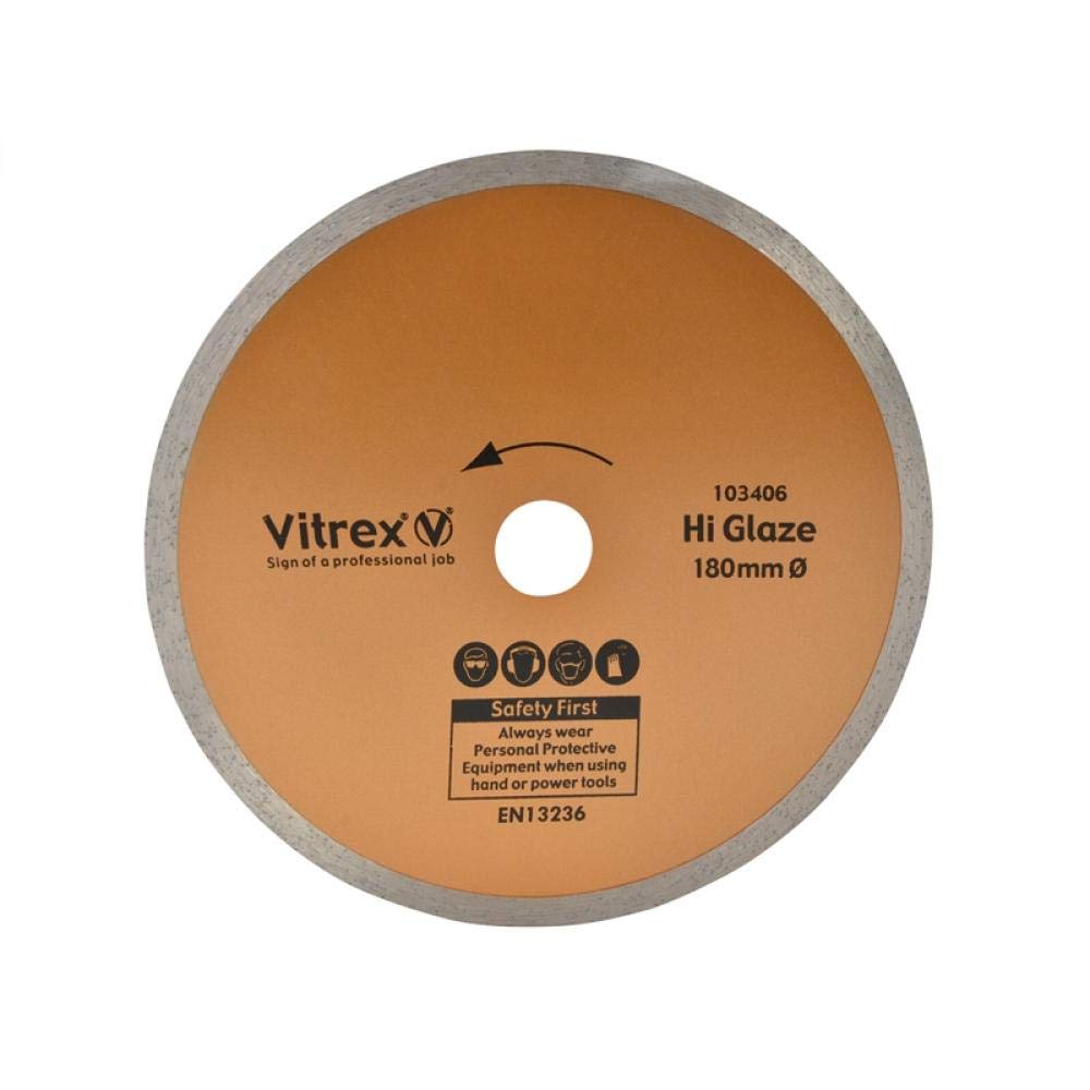 This Vitrex Hi-Glaze diamond blade produces the finest cut to eliminate chipping on ceramic, porcelain, slate, stone, marble, travertine, granite, quarry, terracotta tiles and limestone.