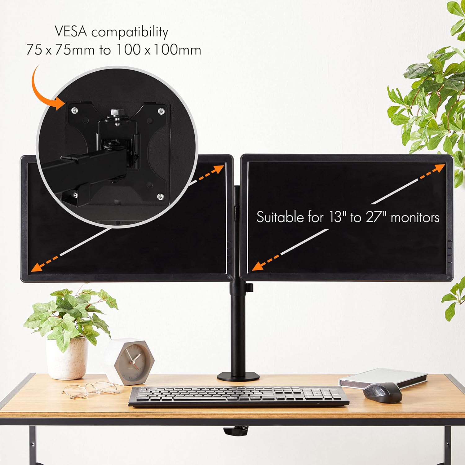 VonHaus Dual Monitor Mount for 13-32” Screens – Double Arm Desk Stand Bracket with Clamp – Ergonomic 180° Tilt, 360° Rotation & Twin 360° Swivel Arms – VESA Dimensions: 75×75-100×100