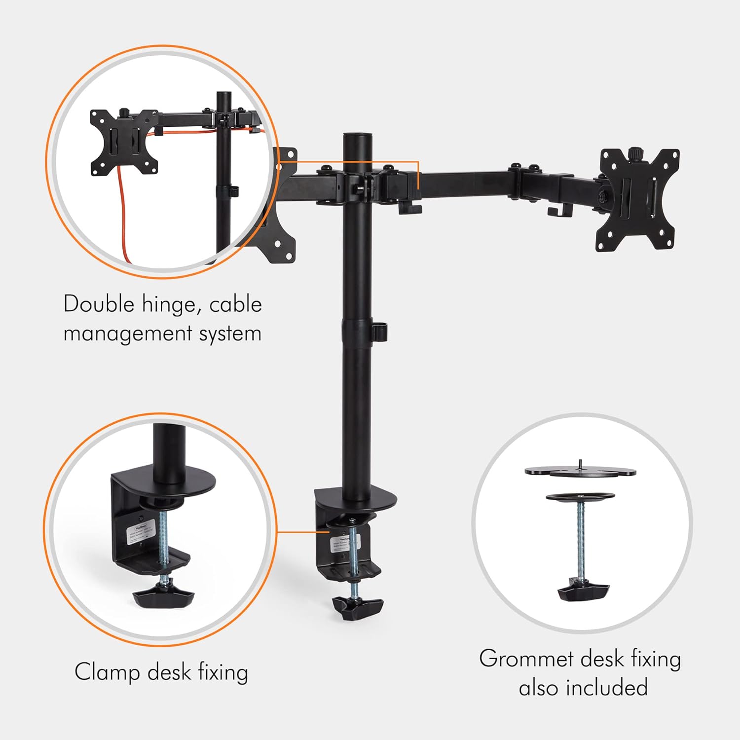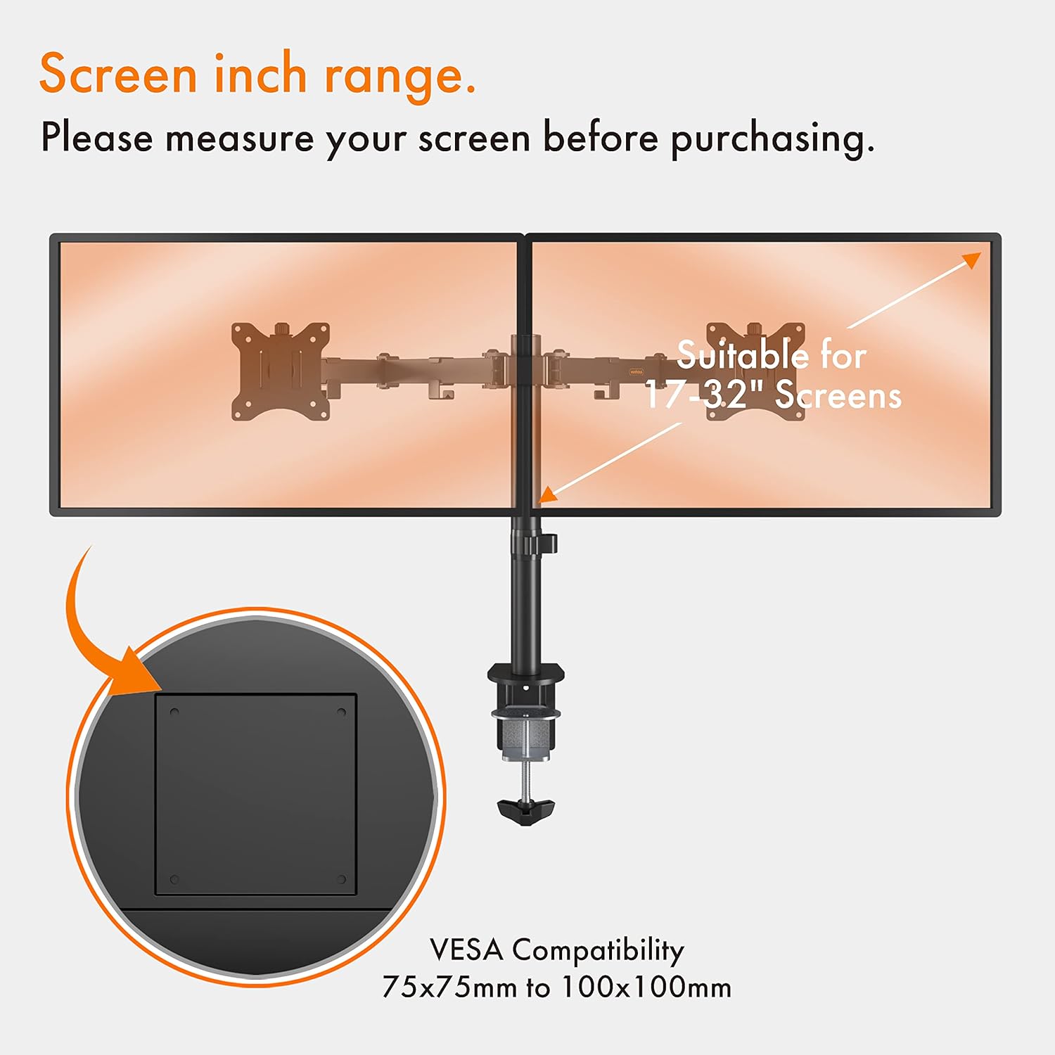 VonHaus Dual Monitor Mount for 13-32” Screens – Double Arm Desk Stand Bracket with Clamp – Ergonomic 180° Tilt, 360° Rotation & Twin 360° Swivel Arms – VESA Dimensions: 75×75-100×100