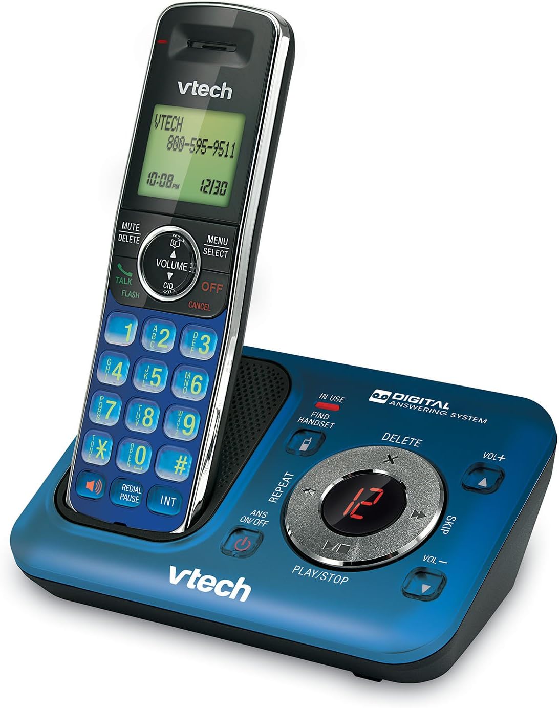 VTech CS6429-15 Dect 6.0 Cordless Phone with Digital Answering System and Caller ID, Expandable Up To 5 Handsets, Wall mountable, Blue