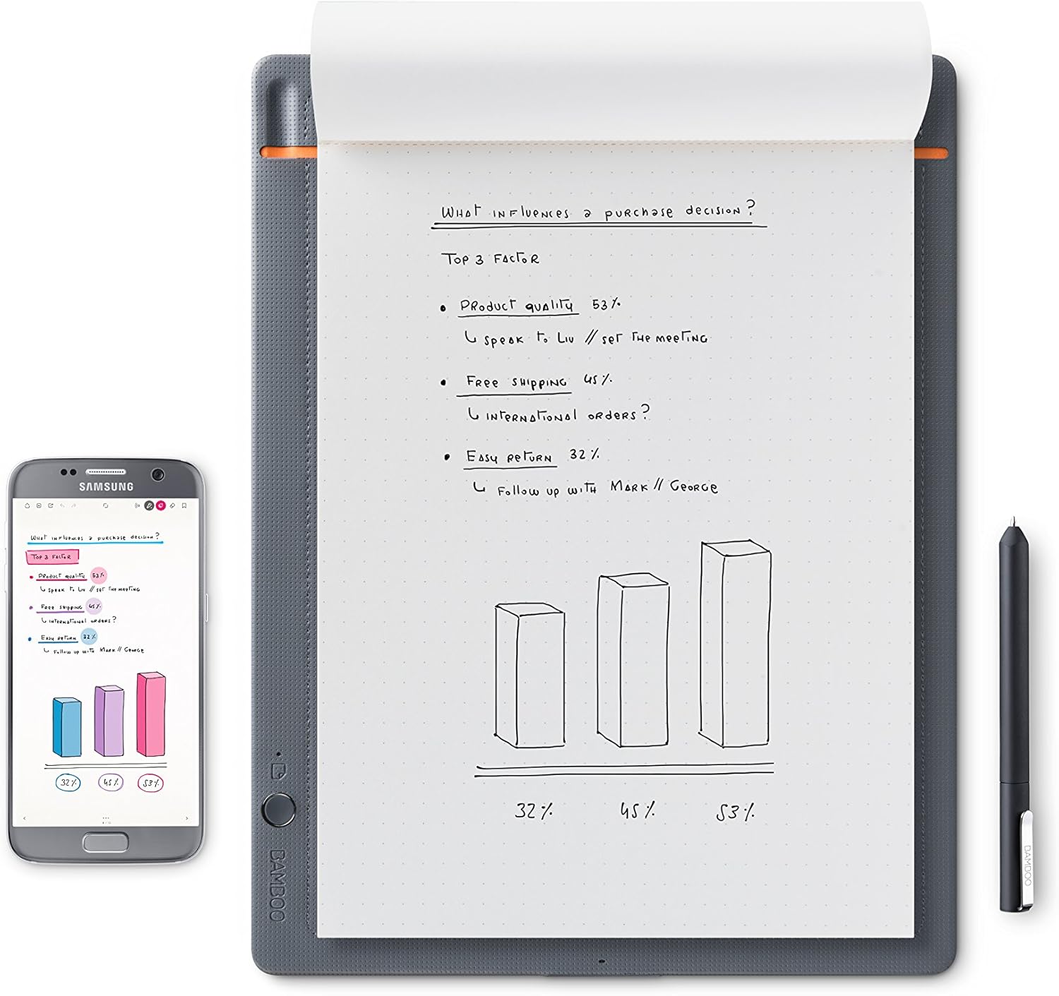 Simply press the button to transfer your notes or sketches to the digital world – via Bluetooth to your smartphone or tablet.You just need to install the Wacom Inkspace app on your device, and the app and the connected cloud services will help you manage, shape, convert and share your ideas.