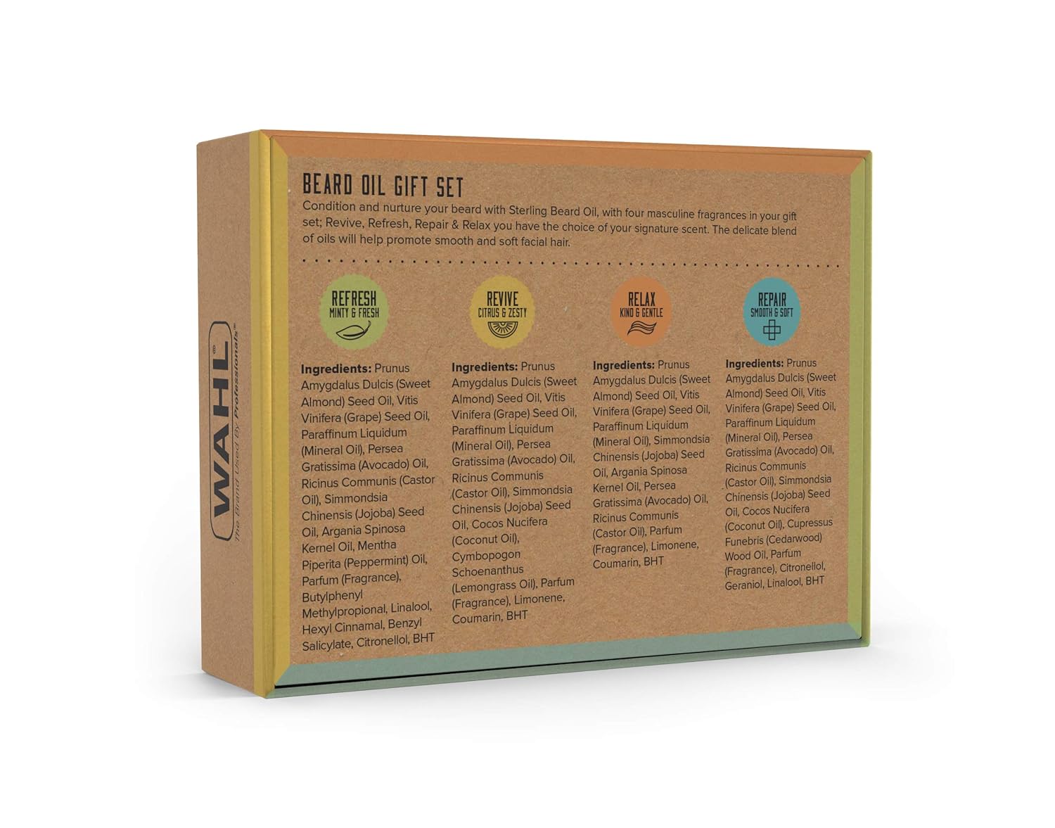 An ideal gift for your favourite beards man, this set features four of Wahl’s natural blend beard oils that comes in an elegant box with wood shavings. Wahl’s beard oils are a fundamental product in achieving a smooth and well-shaped beard at home. Suitable for all beard types, this beard oils help condition the beard and promotes soft, healthy hair. There is a scent for everyone in this gift set – whether they like a clean, crisp scent of peppermint and tea tree or a warming, sweet scent notes of oranges and gingers.