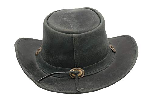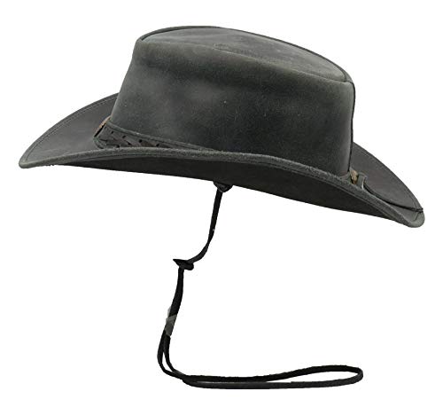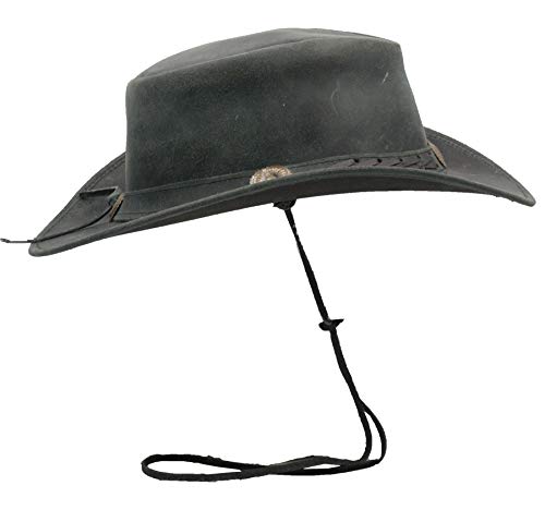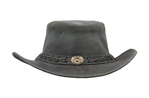 Walker and Hawkes – Leather Cowhide Outback Antique Hat – Black – S (57cm)