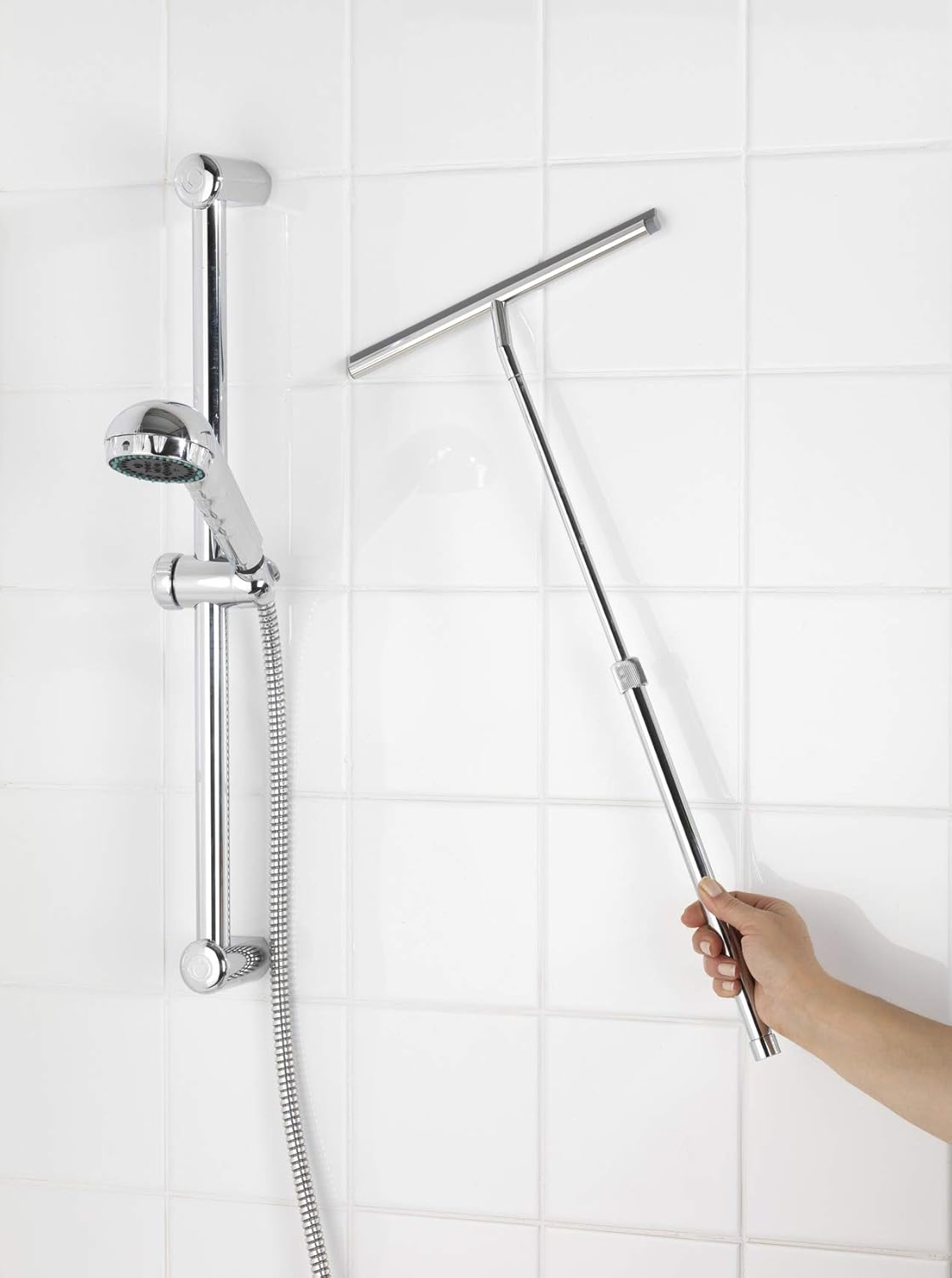 - EXTENDABLE: The shower squeegee handle can extend from 14.6 to 23 inches for reaching up high or down low without stooping-impermeable surfaces