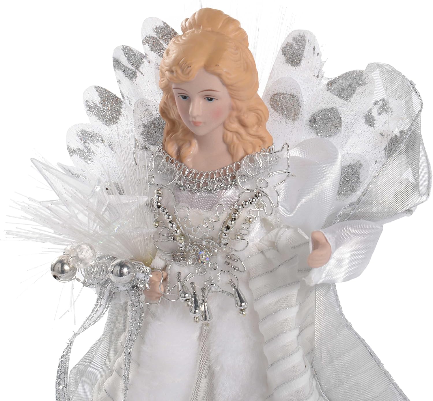 - WeRChristmas elegant fibre optic angel comes with a silver and white dress that’s finished with a lace layer with glitter
