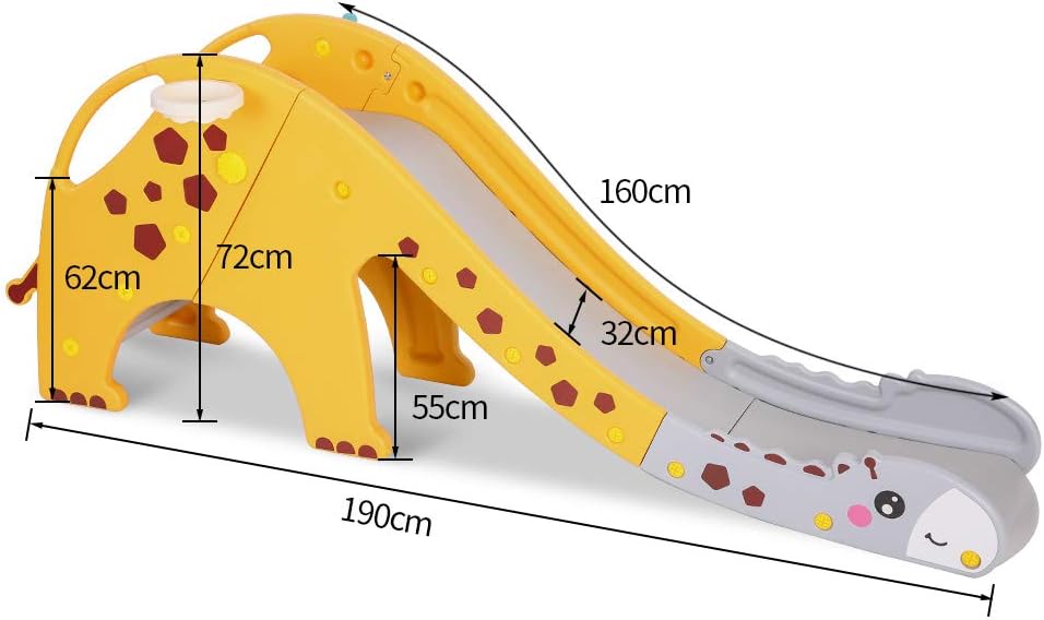 Whitsunday Freestanding Climber Game Slide for Kids with Basketball and Hoop (Giraffe Slide, Yellow+Grey)
