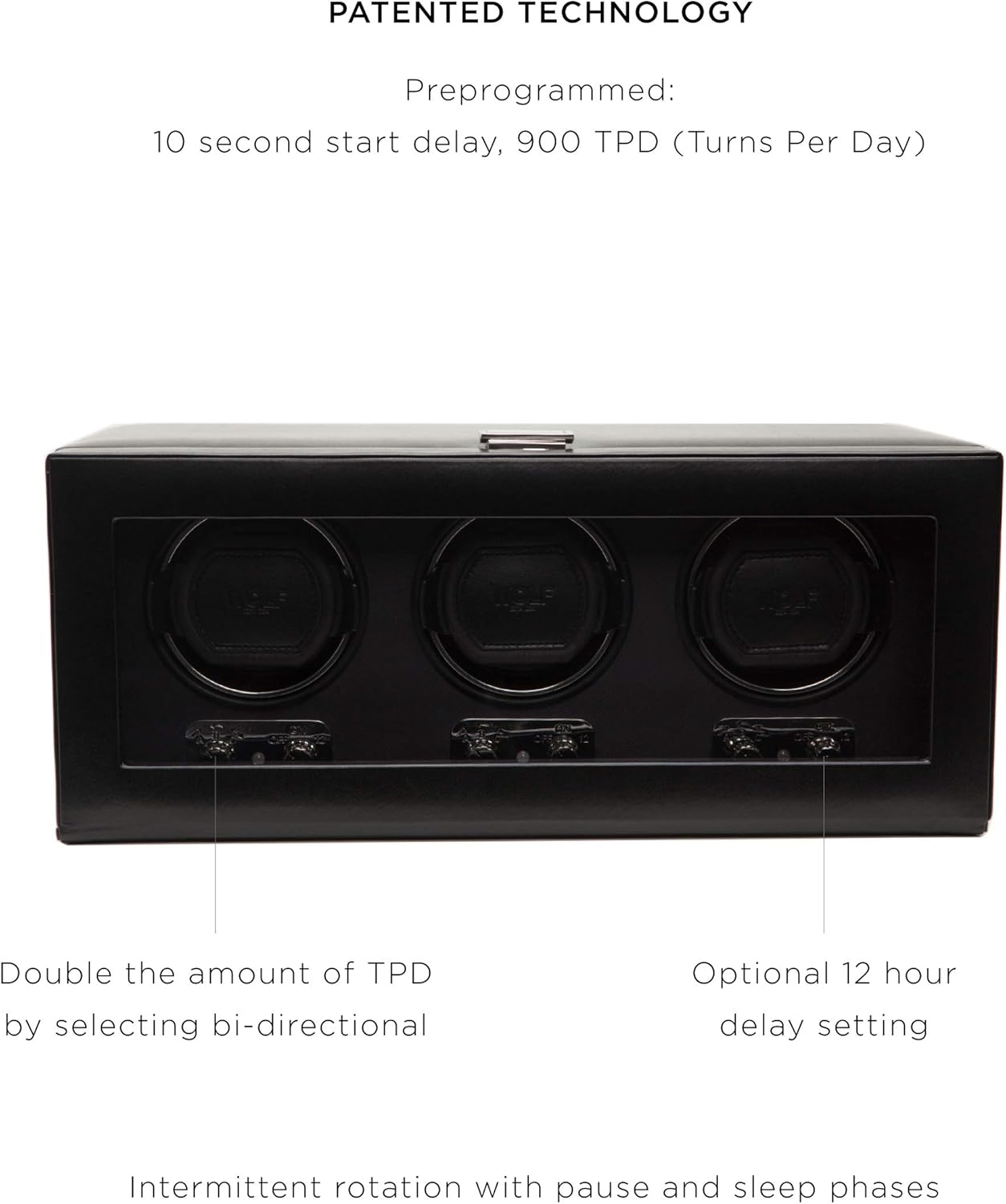WOLF 270202 Heritage Triple Watch Winder with Cover, Black