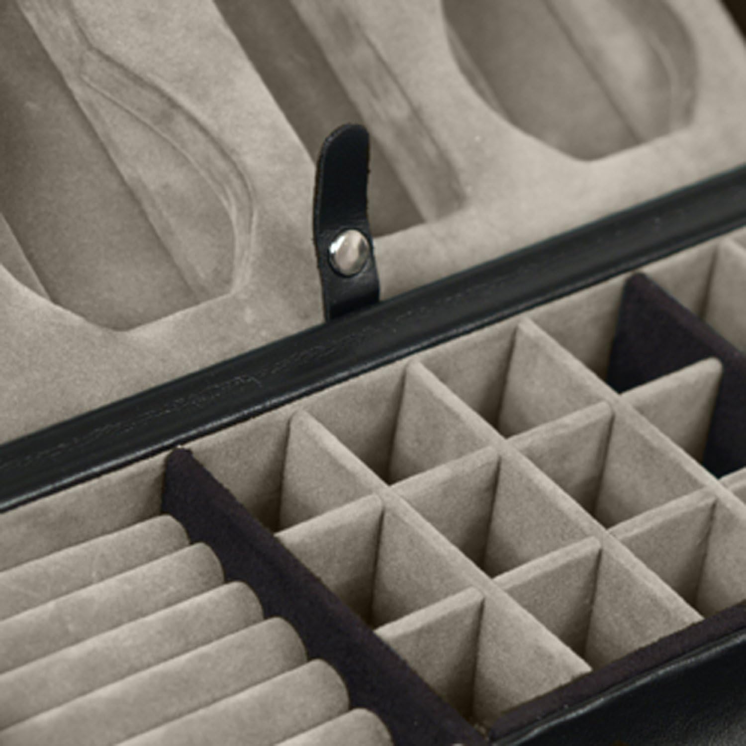 - Storage: 17 compartments, 6 ring rolls and 4 watch compartments