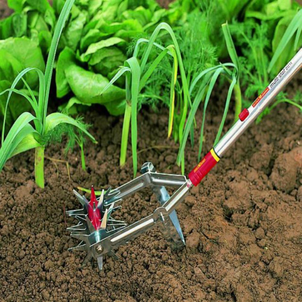 The WOLF-Garten soil crumbler allows gardener’s to quickly change tools in one-click, and eliminates the need for having a garage full of unsightly, and space consuming long-handled tools. This popular soil crumbler breaks up soil to a fine tilth for sowing grasses or planting seeds. It also works well in mixing peat and fertilizers into soil. Easy push-pull action crumbles soil for sowing grass or planting seeds. Mixes peat and fertilizers into soil, while the rear pendulum blade keeps tool at a constant depth. This dual function tool uses strong WOLF Multi-Star snap-lock handle connection and simply requires one of the WOLF-Garten handles.