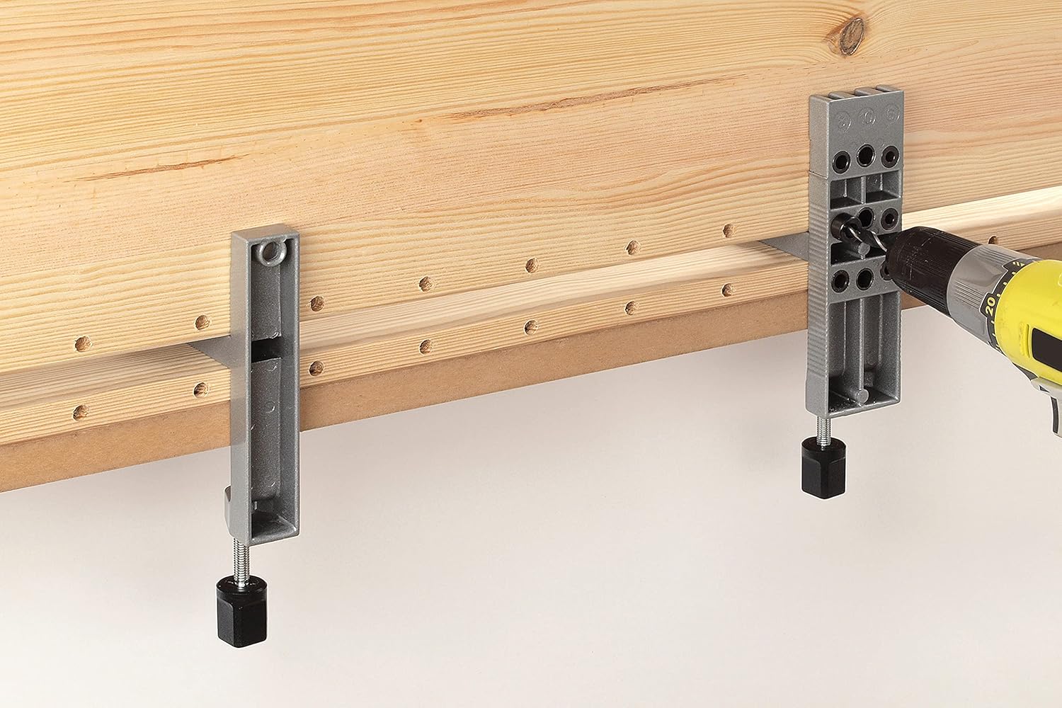 The Wolfcraft Dowelmaster is a universal and quick dowelling jig for corner, T-butt and edge-to-edge connections. Suitable for: 6, 8 and 10 mm dowel pinsBoard thicknesses from 12 – 30 mm.For all types of wood dowel connections (Corner, T-butt and edge to edge).Simply clamp, drill and dowel the parts together; no measuring and marking.For 6,8,10 mm wood dowels.Supplied with 8 mm dowels, 8 mm dowel drill and depth stop. B3750 Universal Dowelling Set