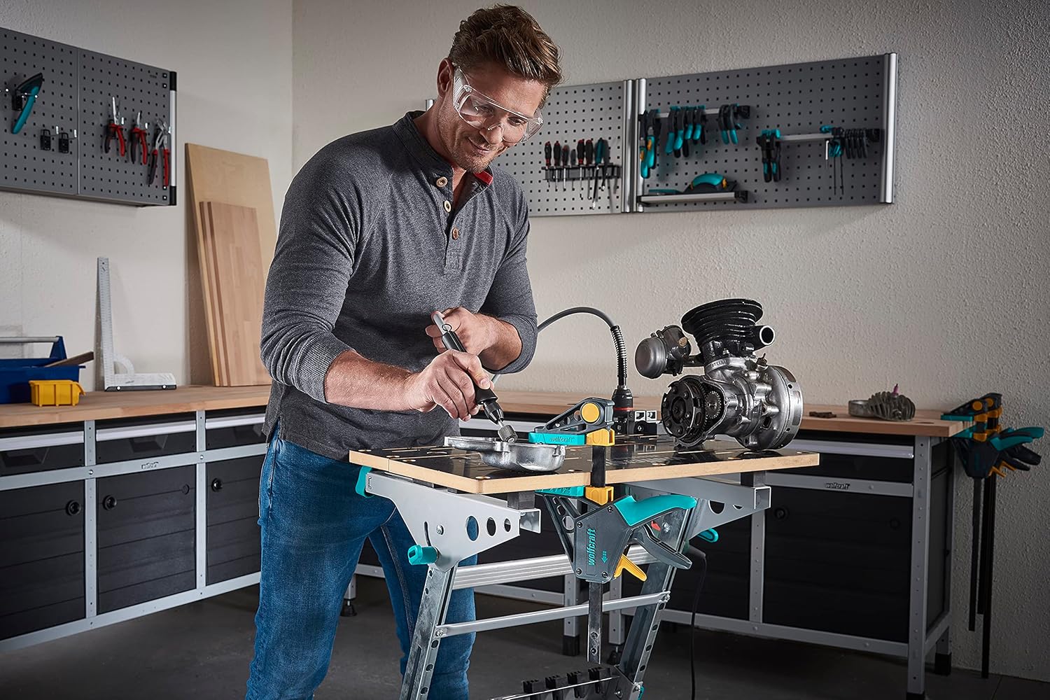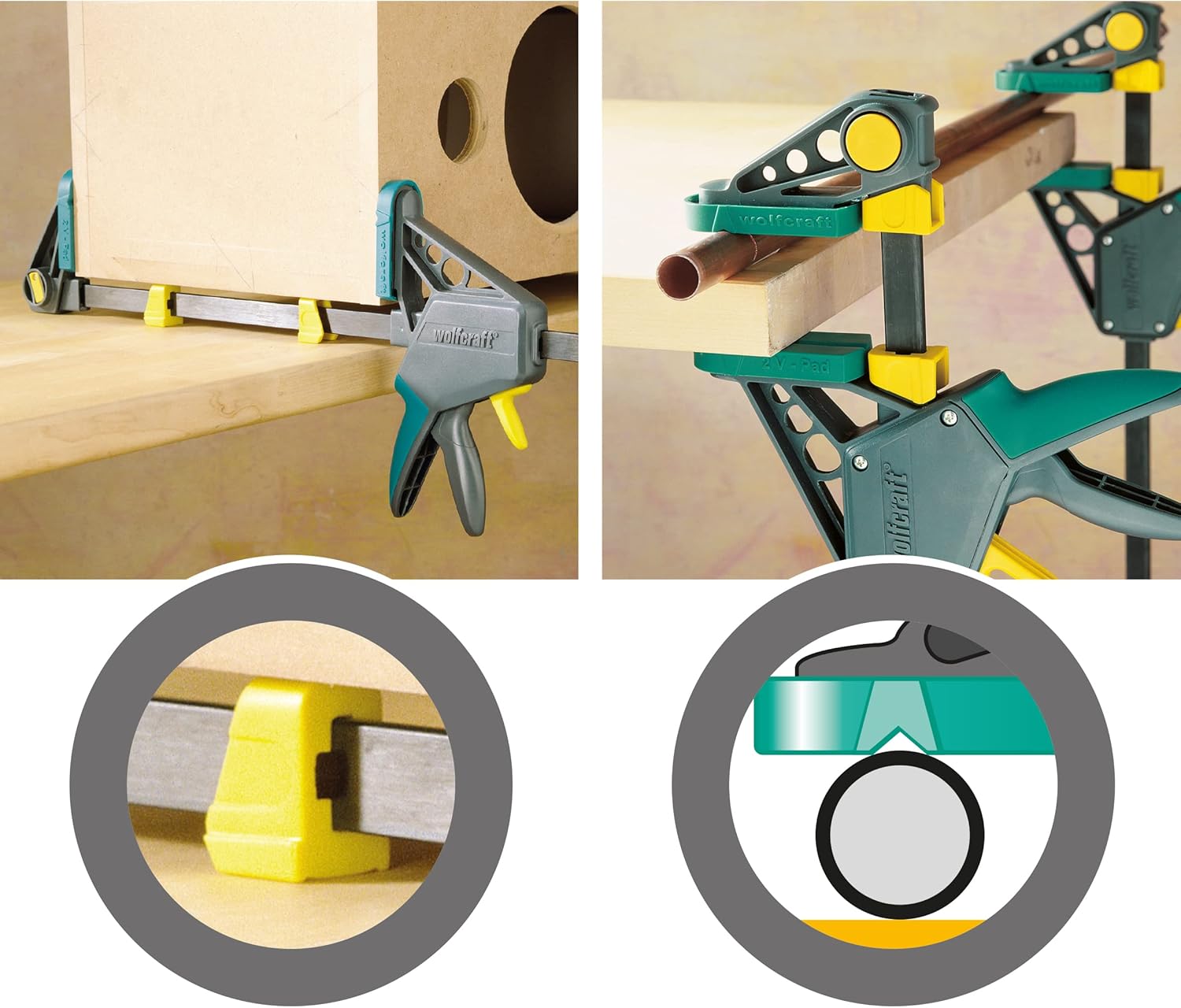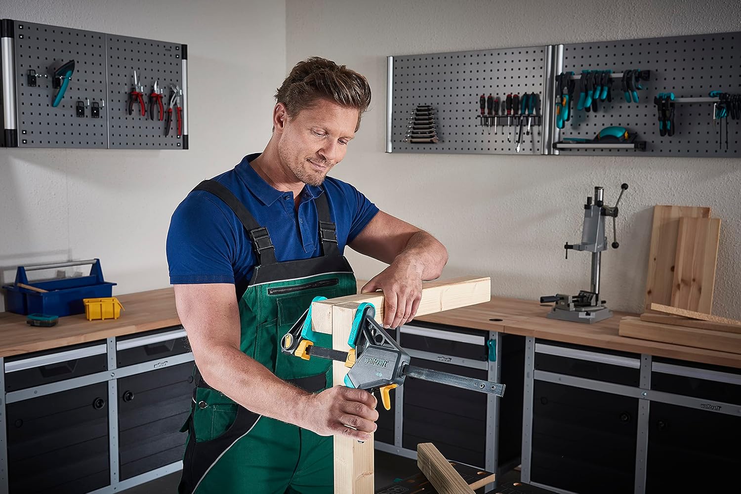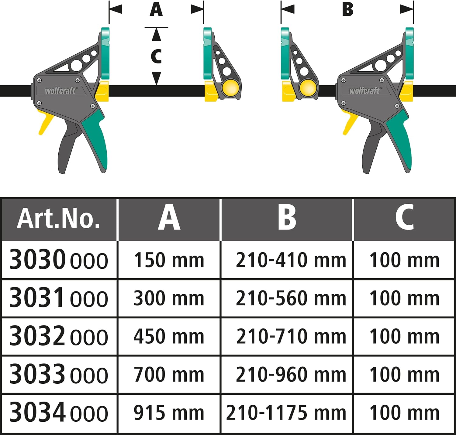 wolfcraft One-Hand Clamp PRO 100450 mm: The innovative One-Hand Clamp from wolfcraft is particularly powerful and suitable for solving all challenges related to clamping, expanding and fixing workpieces in a professional environment. The ergonomic handle and anti-slip zone make the clamp easy to operate and provides a secure grip when in use. The clamp is suitable for all workpieces, whether round or angular. A unique mechanism means you can clamp and release in a controlled manner, with just one hand a must-have for every DIY enthusiast! Product details: Part number: 3032000; Clamping force up to 120 kg; Depth: 100 mm; Clamping width: 450 mm; Expanding range: 210710 mm; Cross groove for safely clamping round objects; Effortless conversion to the spreading function by pushing a button; Quick, safe and convenient clamping with just one hand. Very easy release of the clamping pressure due to optimum leverage. High-quality rail that ensures high, long lasting clamping force. Adjustable spacers protect the workpiece and serve as support.wolfcraftAn award-winning, reputable and trusted German DIY brand. Since 1949 the wolfcraft brand has been synonymous with the development and production of high-quality tools and product innovations to meet the needs of DIY enthusiasts. Today, over 650 employees in 16 countries work on developing products that are not only innovative, but continuously improved upon, driving progress in the tools and accessories sector forwards.