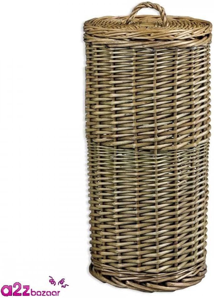 WoodLuv Large Wicker Storage Basket with White Lining, Black