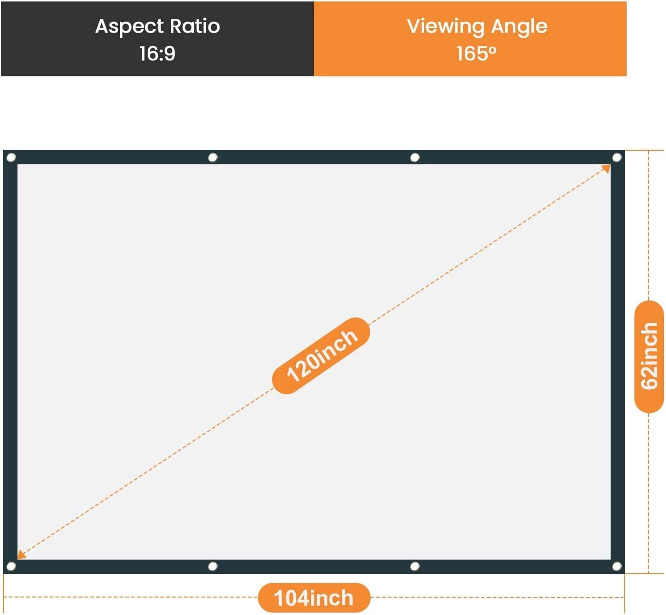 Wsky 120 Inch Projector Screen, 16:9 HD Folding Portable Anti-crease Projector Movies Screen,