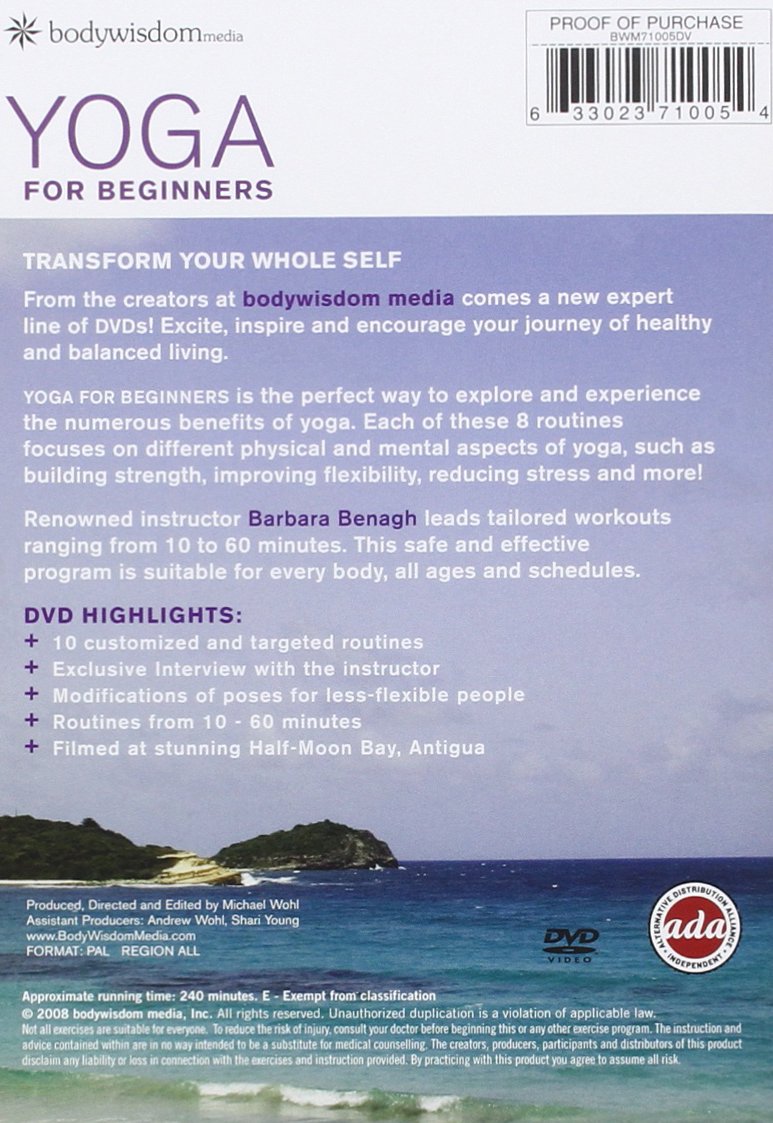 YOGA FOR BEGINNERS is the perfect way to be introduced to Yoga and it helps you to explore and experience the numerous benefits of yoga. There are 8 routines to help build strength, increase flexibility, improve your health and vitality and transform how you look and feel. Routines are led by renowned instructor Barbara Benagh who expertly leads you through tailored workouts ranging from 10 to 60 minutes. Yoga for Beginners was filmed on location at one of the most beautiful, tranquil beaches in the world, Half-Moon Bay, Antigua, which adds to the overall experience of tranquillity.