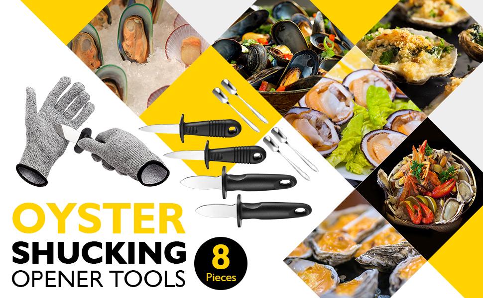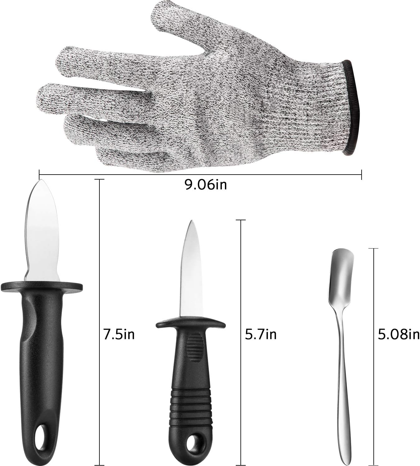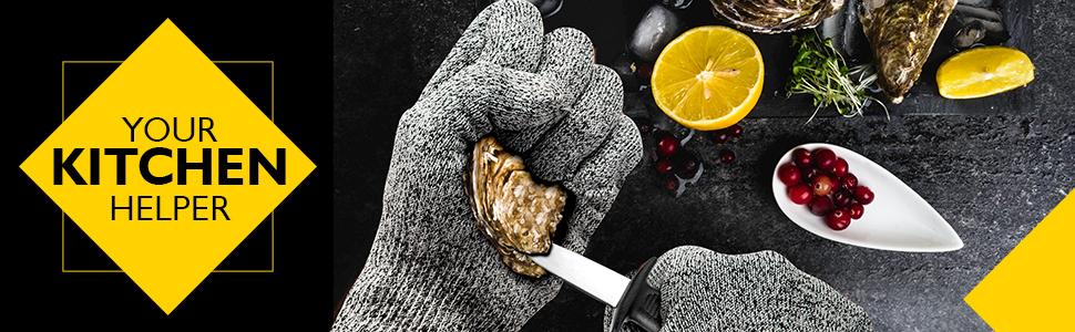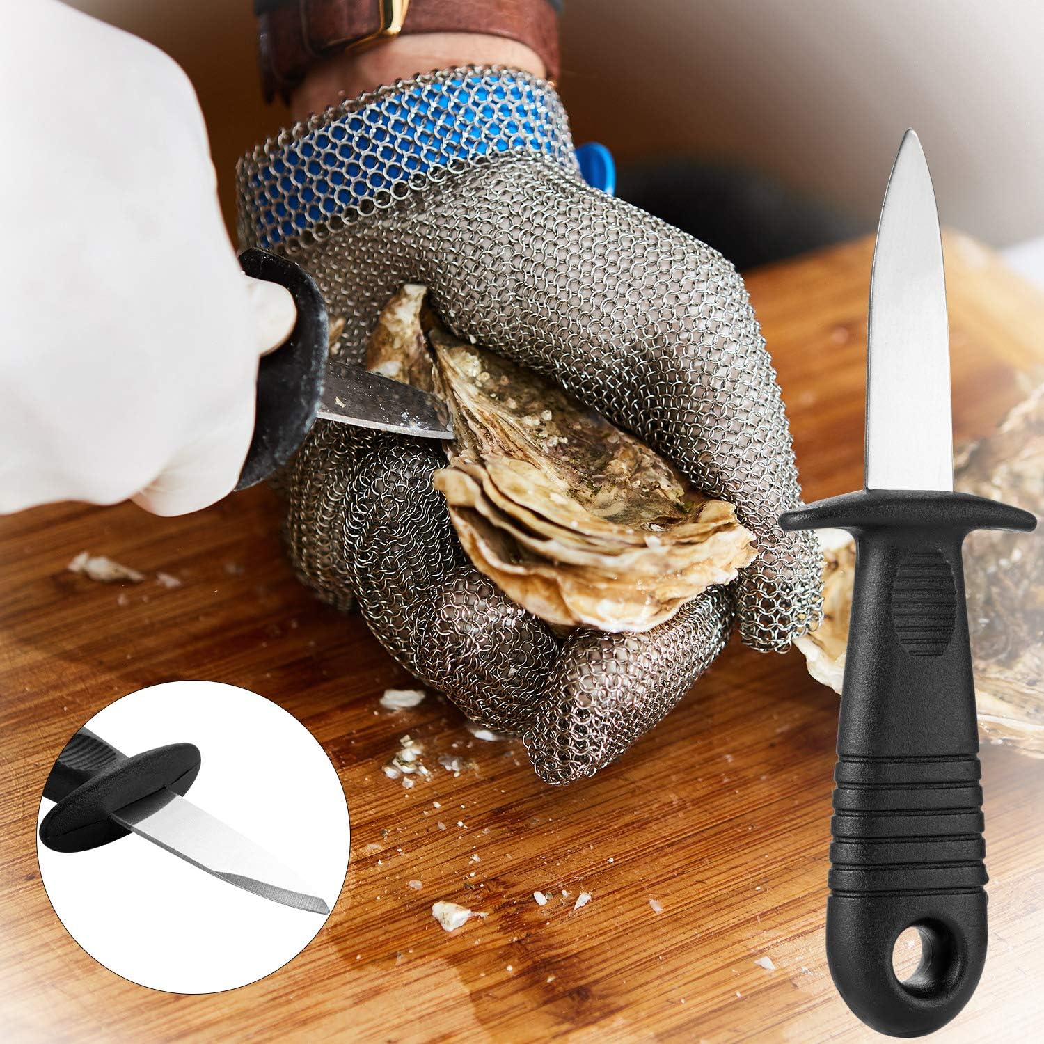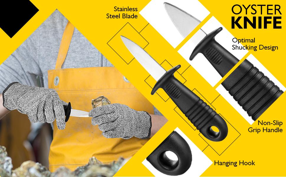 Zonon 4 Pieces Oyster Shucking with Level 5 Protection Resistant Gloves (L), Oyster Shucker Opener Tool for Clam Shellfish and Seafood