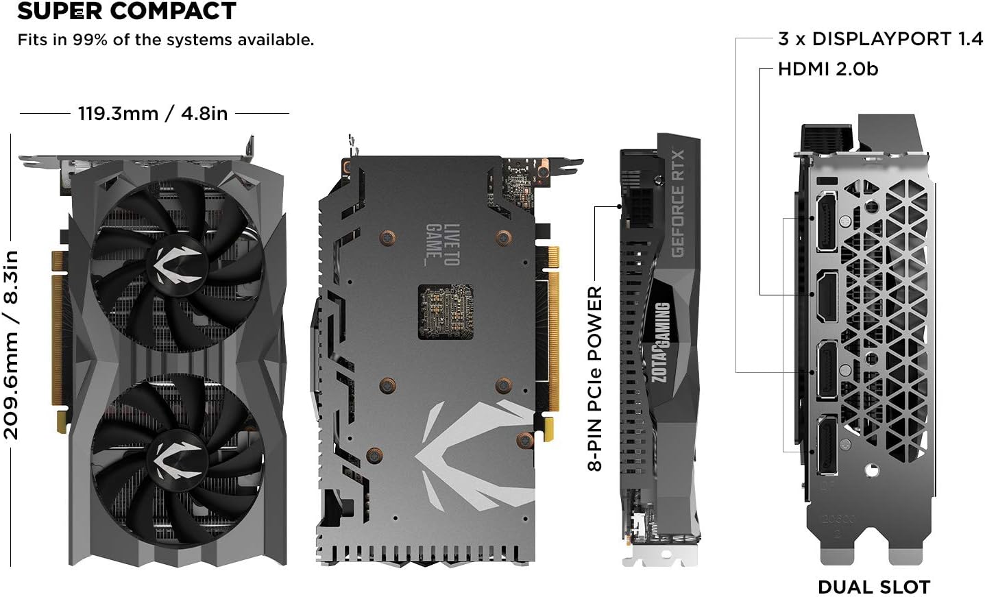 ZOTAC Gaming GeForce RTX 2060 6GB GDDR6 192-bit Graphics Card, Super Compact, ZT-T20600H-10M